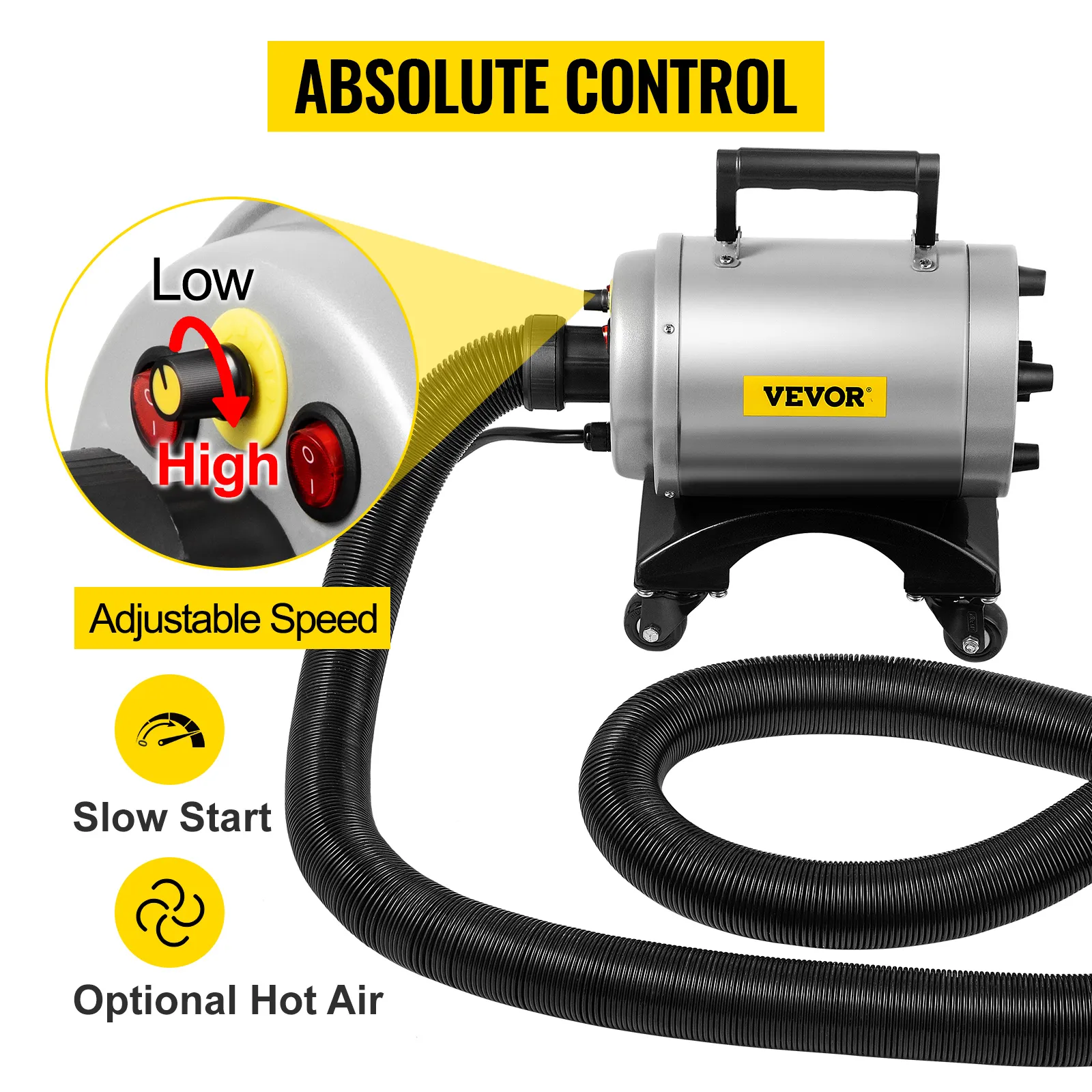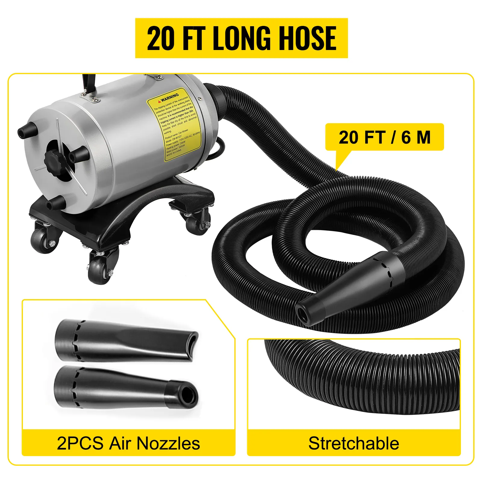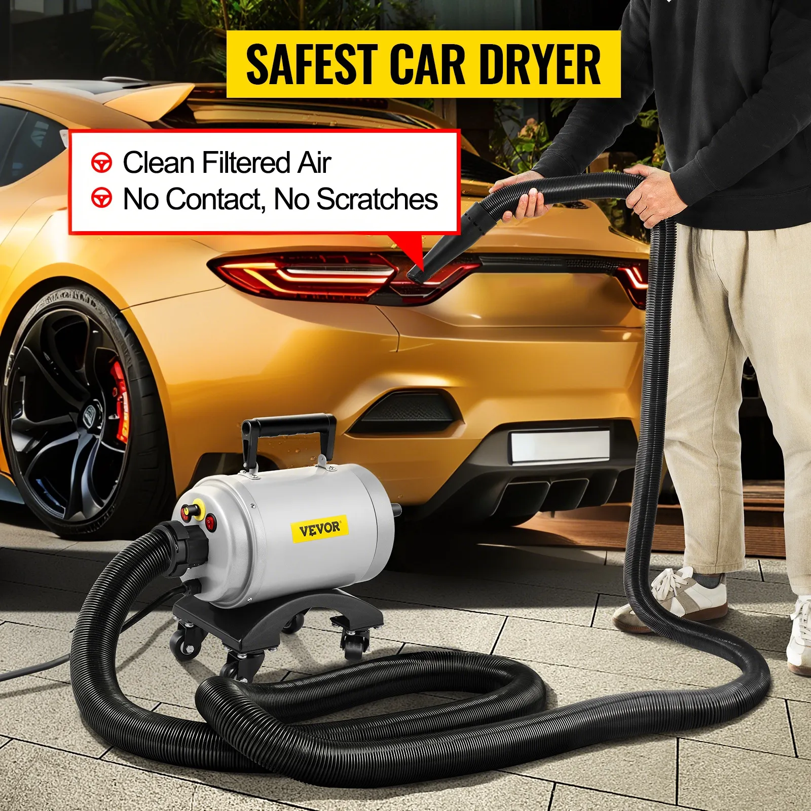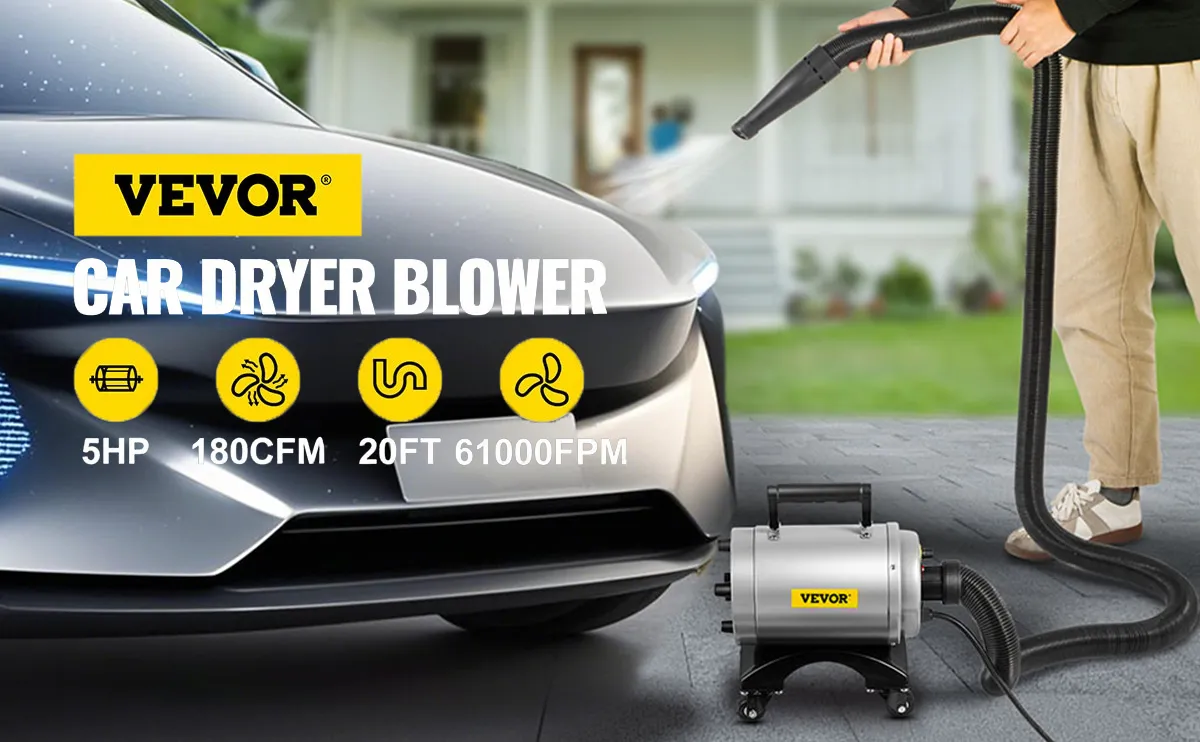 VEVOR Secador de aire para automóvil, soplador de aire para secador de automóvil de alta velocidad y temperatura de 5.0HP 180 CFM 110V 5-20P (20A) enchufe, con ruedas y manguera flexible de 20 pies y 2 boquillas de chorro de aire para máquina de secado de agua de lavado de automóvil