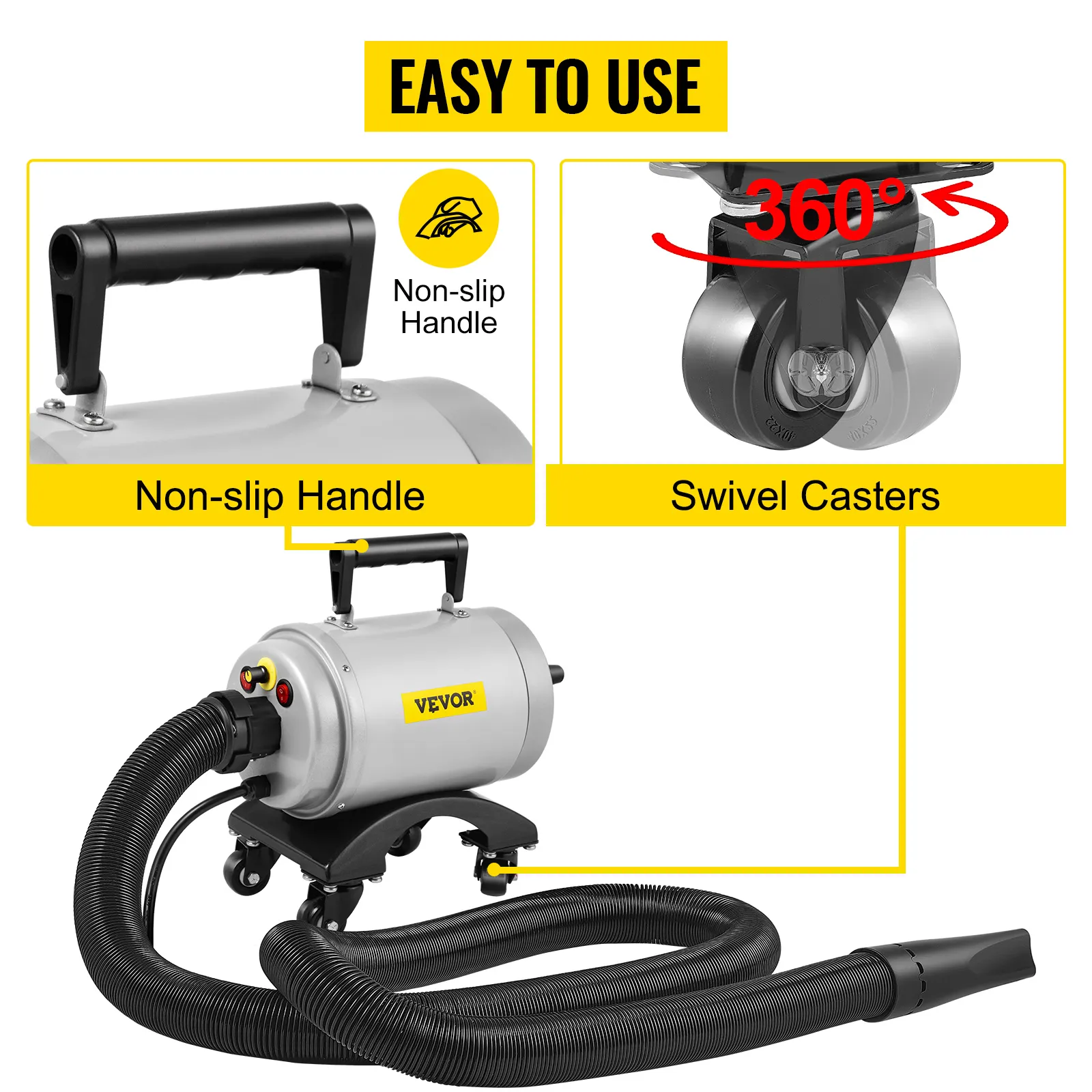 Esta secadora para automóvil está diseñada con cuatro ruedas giratorias para que pueda moverla alrededor de su automóvil sin esfuerzo para asegurarse de que toda el área esté cubierta y la manija de elevación antideslizante también le ofrece una gran comodidad.