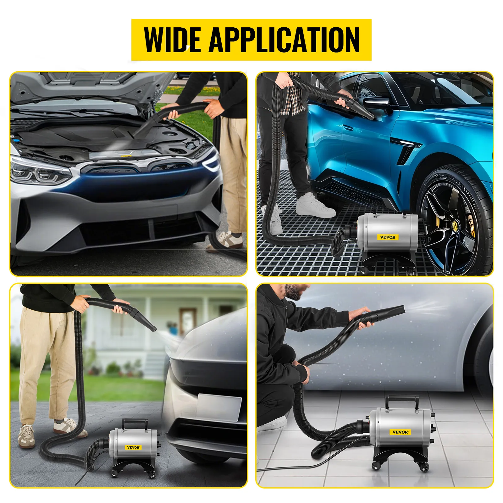 Con el potente aire caliente producido por el motor, este soplador de aire para automóvil puede secar su automóvil en el menor tiempo posible en comparación con otros métodos tradicionales.