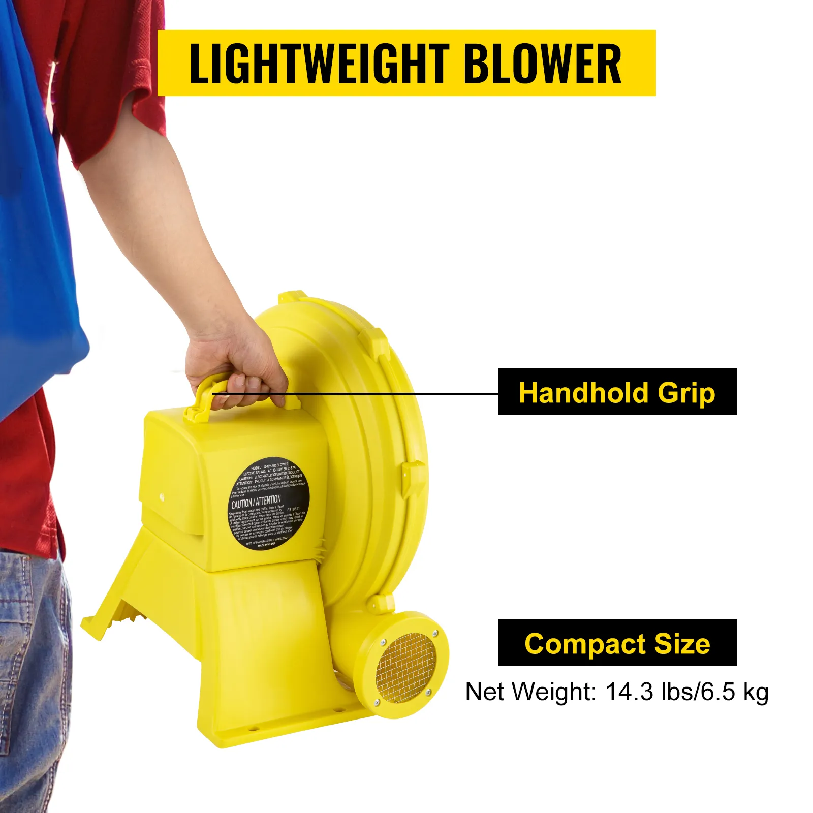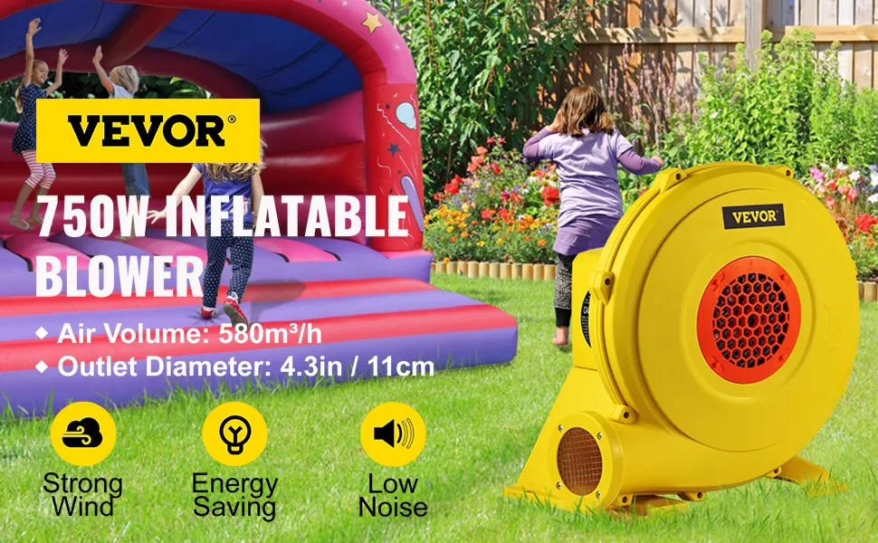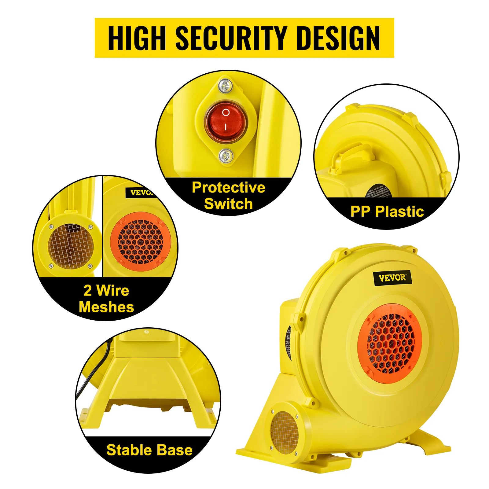 - Nuestro soplador inflable está construido con plástico PP ignífugo de alta calidad para un largo tiempo de servicio. Con un motor potente de 750 W, el volumen de aire alcanza los 580 m³/h y la velocidad de rotación puede alcanzar las 3400 RPM. Llene y sople rápidamente los productos inflables que necesita. El interruptor de protección y la malla de alambre garantizan la seguridad durante el funcionamiento, para que pueda disfrutar de un momento inolvidable con familiares y amigos. Es ideal para casas inflables, toboganes de agua, carreras de obstáculos, sofás de aire de cabinas de pintura y otros saltadores inflables adecuados.