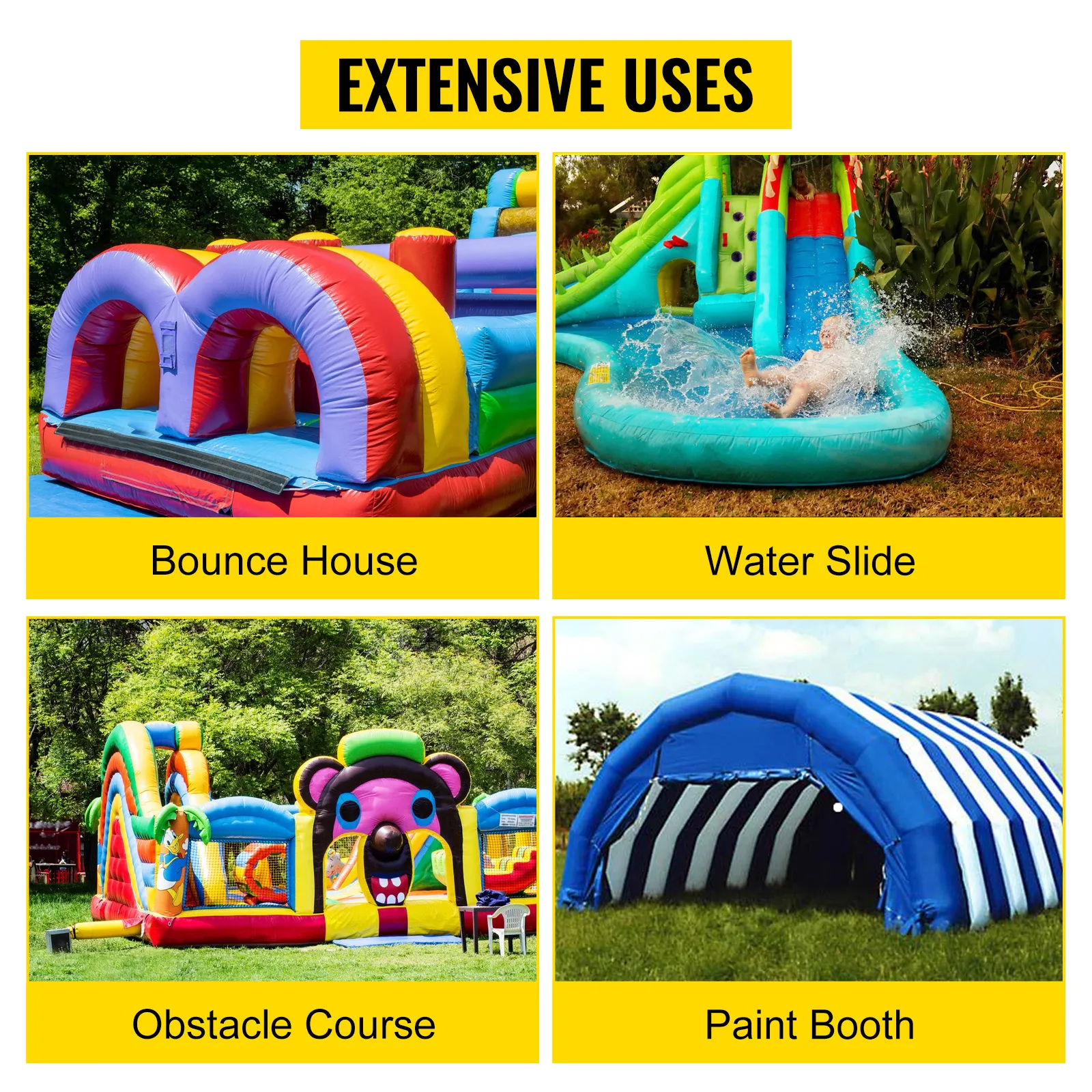Diámetro de salida: 4,3 in/11 cm. Este soplador de aire de 750 vatios es ampliamente utilizado en interiores y exteriores, perfecto para casas inflables para saltar, toboganes de agua, carreras de obstáculos, sofás de aire para cabinas de pintura y otros saltadores inflables adecuados.