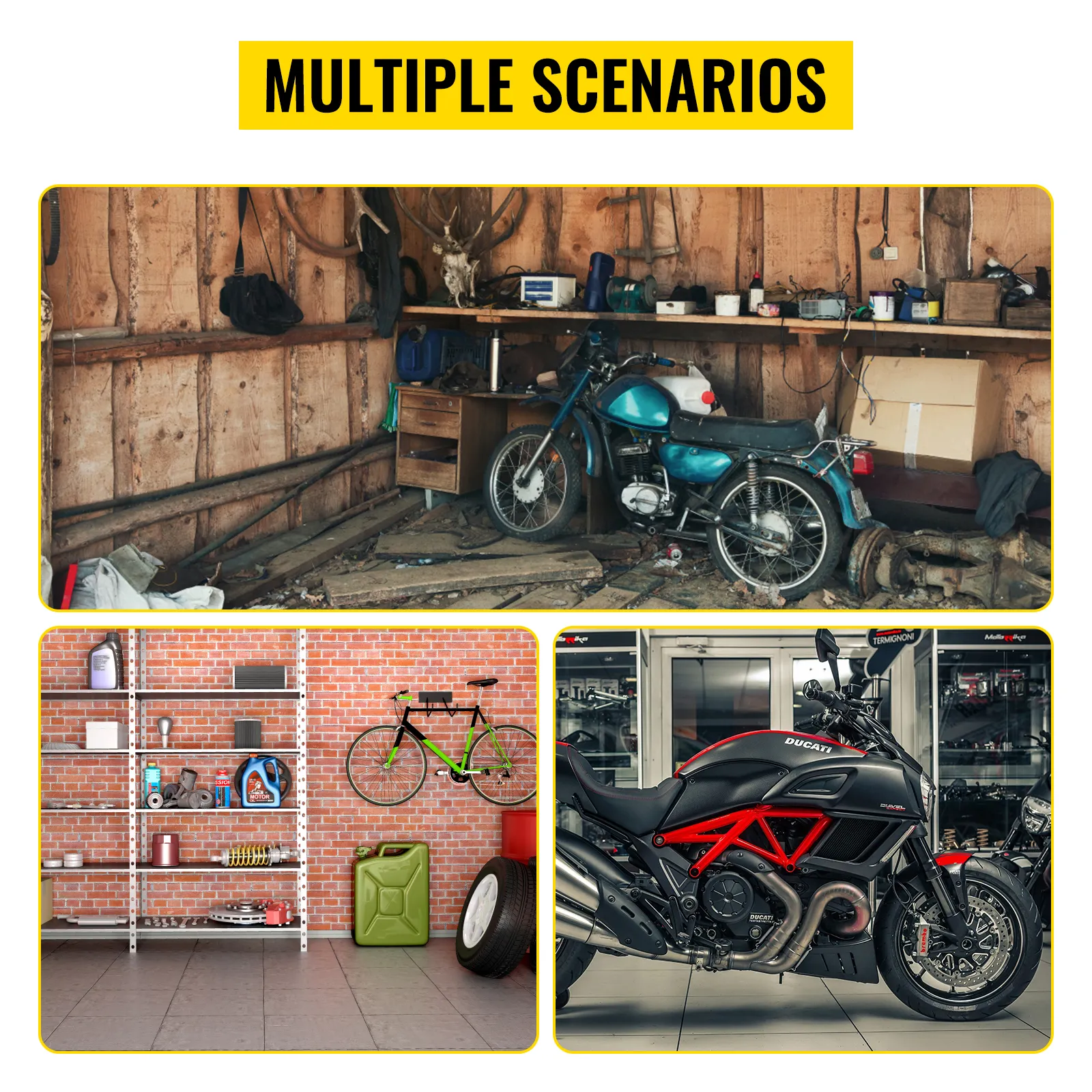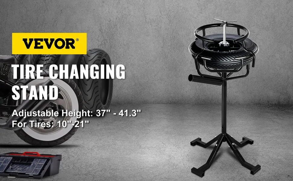 Este soporte para cambiar llantas de motocicleta está diseñado para llantas que miden 10"/25,4 cm a 21"/53,4 cm de diámetro. Puede adaptarse a la mayoría de las ruedas de motocicletas del mercado.