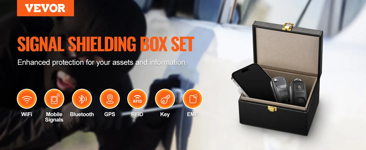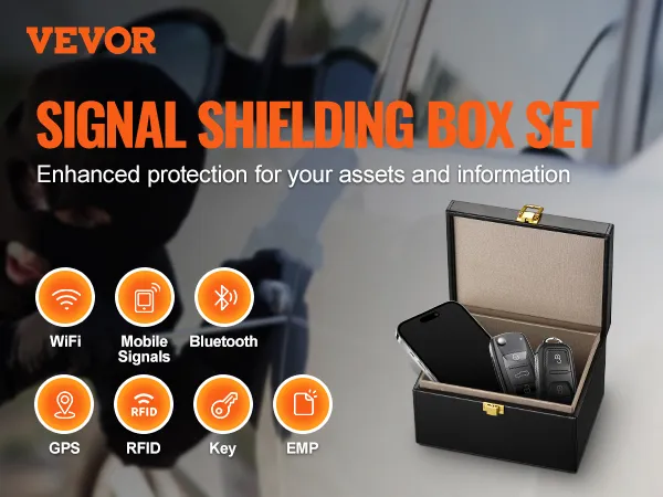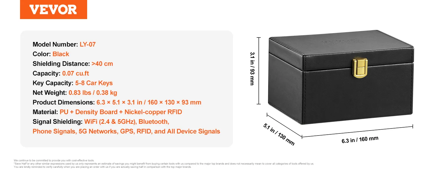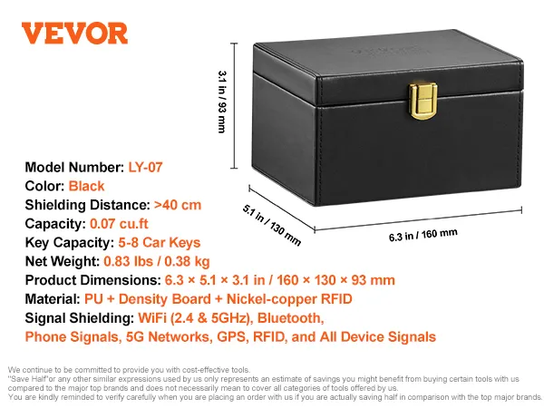 VEVOR Faraday Box, funda de cuero sintético con bloqueo de señal, protector de llavero sin llave para WiFi, RFID, GPS, Bluetooth y 5G, caja antirrobo y antipiratería, color negro (6,3 x 5,1 x 3,7")