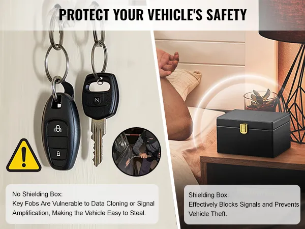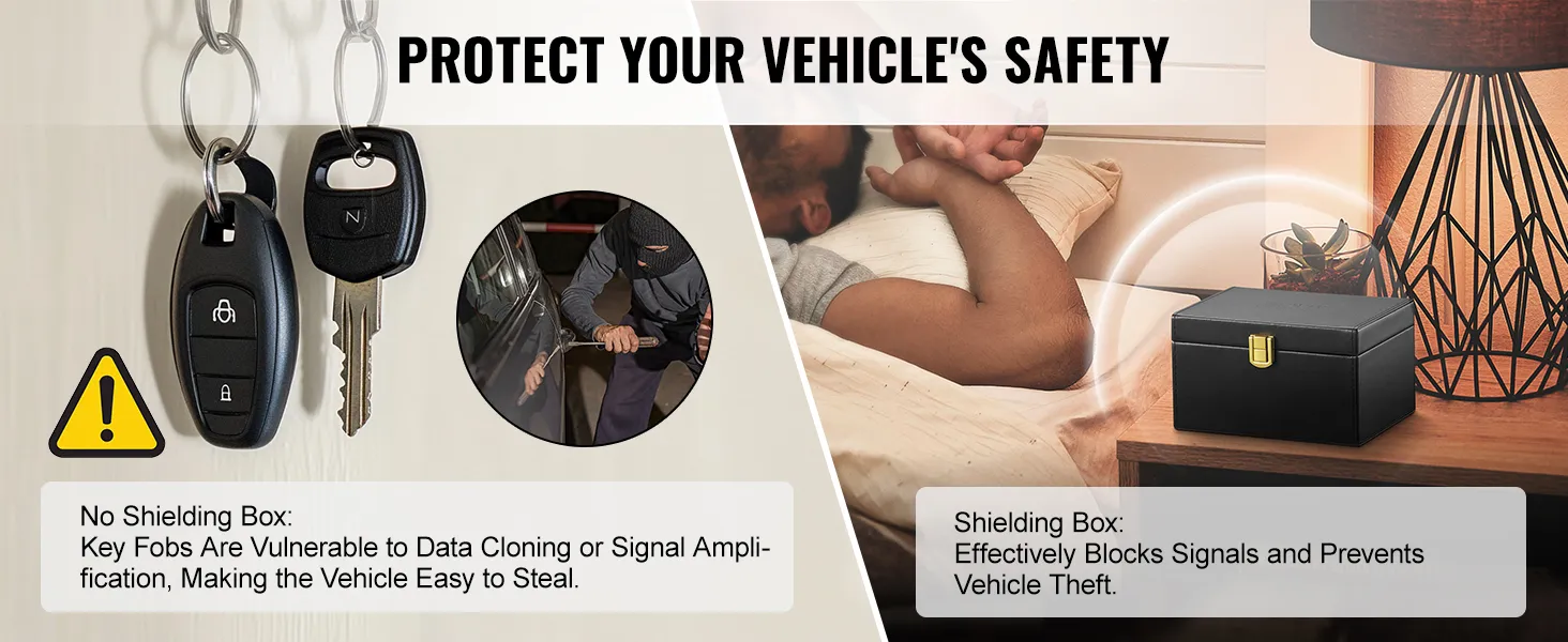 Protección integral: ¿No estaría en crisis si le robaran el vehículo? El robo de vehículos ocurre con frecuencia hoy en día simplemente utilizando un dispositivo amplificador de señal para amplificar de forma remota las señales del automóvil sin llave mientras usted duerme. Esta caja de Faraday está diseñada para prevenir el robo de vehículos, puede evitar que los ladrones obtengan y reenvíen señales de sus llaves para evitar el robo y el robo del encendido sin llave. Protegerá su vehículo y su información de manera segura.