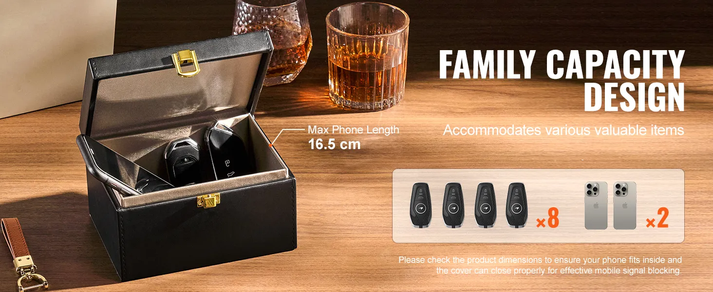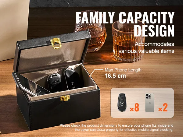 Esta capacidad familiar es perfecta para el almacenamiento centralizado de varias llaves de coche en casa, y también para guardar teléfonos móviles, garantizando así un tiempo de sueño sin llamadas telefónicas y una protección eficaz contra la radiación.