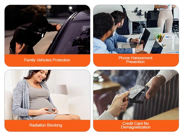 Nuestra funda protectora se puede utilizar para proteger vehículos, proteger datos personales, proteger contra EMP/CME, etc. También puede reducir la radiación electromagnética y es adecuada para embarazadas.