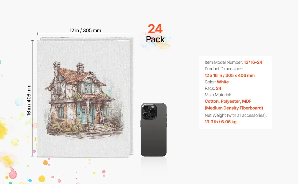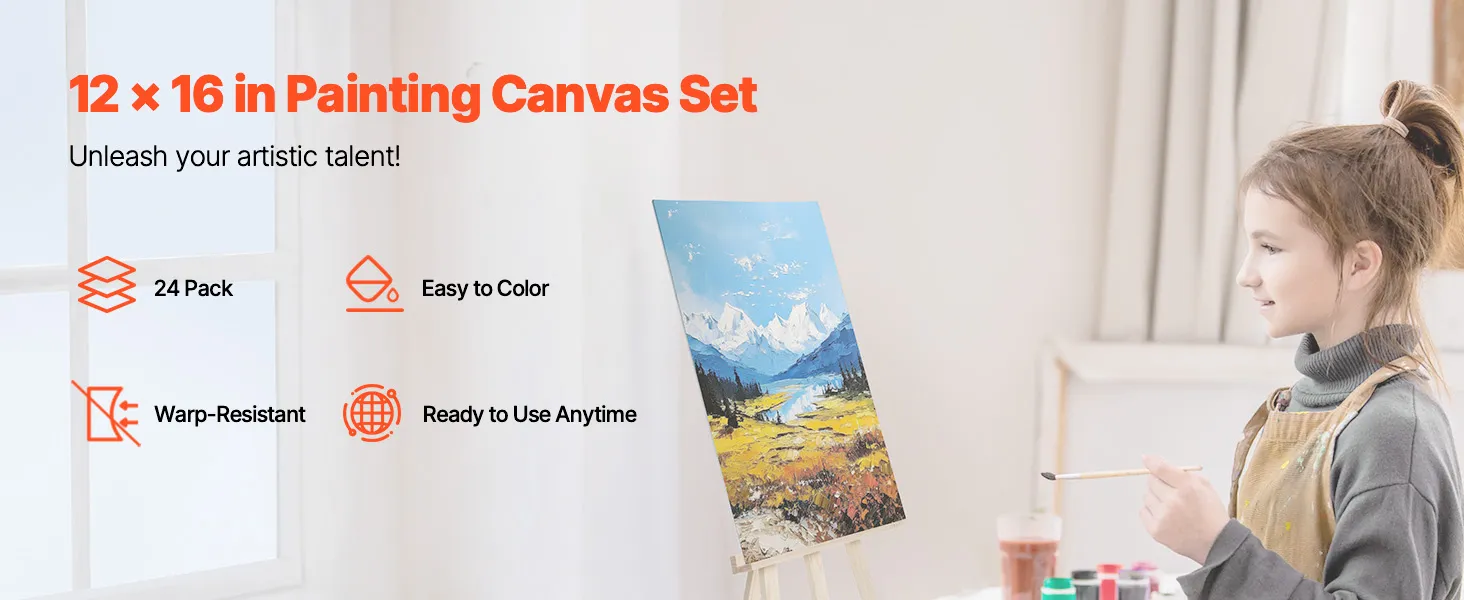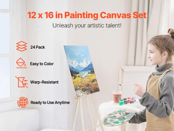 Lienzos VEVOR para pintar, lienzos blancos de 30 x 40 cm, paquete de 24 para dibujar, pintar con acrílico, óleo y acuarela, ideal para niños y profesionales.
