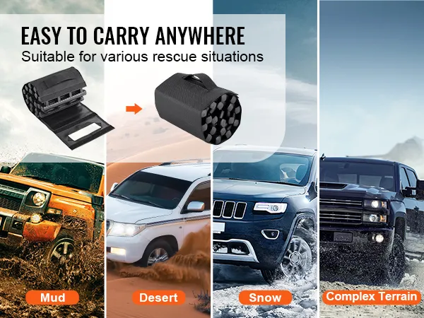 Cuando no están en uso, las alfombras de tracción de recuperación se pueden enrollar y guardar fácilmente en su bolsa de transporte, lo que las hace portátiles y convenientes para cualquier escenario de rescate de vehículos. Este accesorio de seguridad esencial es perfecto para valientes todoterreno y para cualquiera que conduzca en condiciones climáticas adversas.