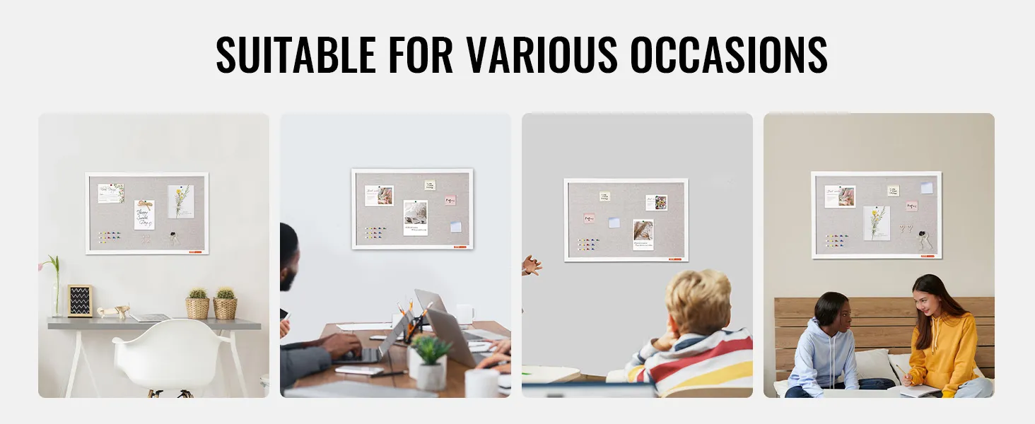 Marco liso y duradero: este tablero de corcho tiene un marco clásico de MDF blanco, liso y duradero, que complementa cualquier decoración. Las esquinas redondeadas y resistentes a los rayones garantizan la seguridad y son adecuadas para cualquier entorno.