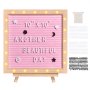 VEVOR Tablero de letras de fieltro rosa, tablero de mensajes de fieltro de 10.0 x 10.0 in, tableros de letreros intercambiables con 510 letras, soporte y luces LED integradas, cartel de anuncio de bebé para decoración del hogar, aula, oficina, boda