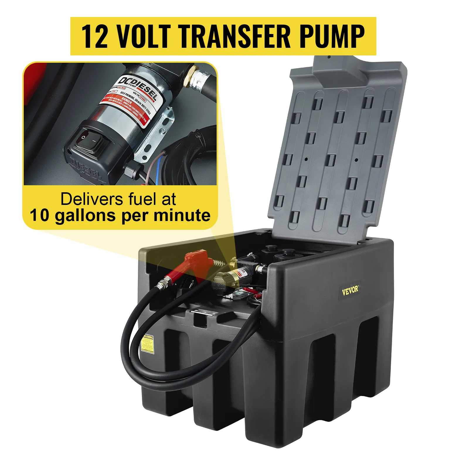 La bomba de transferencia de 12 voltios entregará combustible a 10 galones por minuto. En comparación con otras bombas, nuestros productos pueden entregar combustible más rápido, lo que puede ahorrarle mucho tiempo.