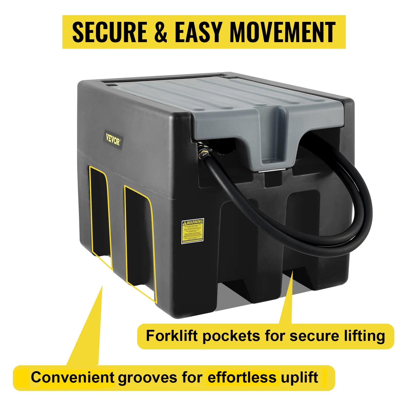 Equipado con 2 ranuras y bolsillos para montacargas, puede mover el tanque de manera fácil y segura. Los bolsillos para montacargas integrados están diseñados para mover el tanque cuando está lleno, y las ranuras convenientes son para levantarlo sin esfuerzo.