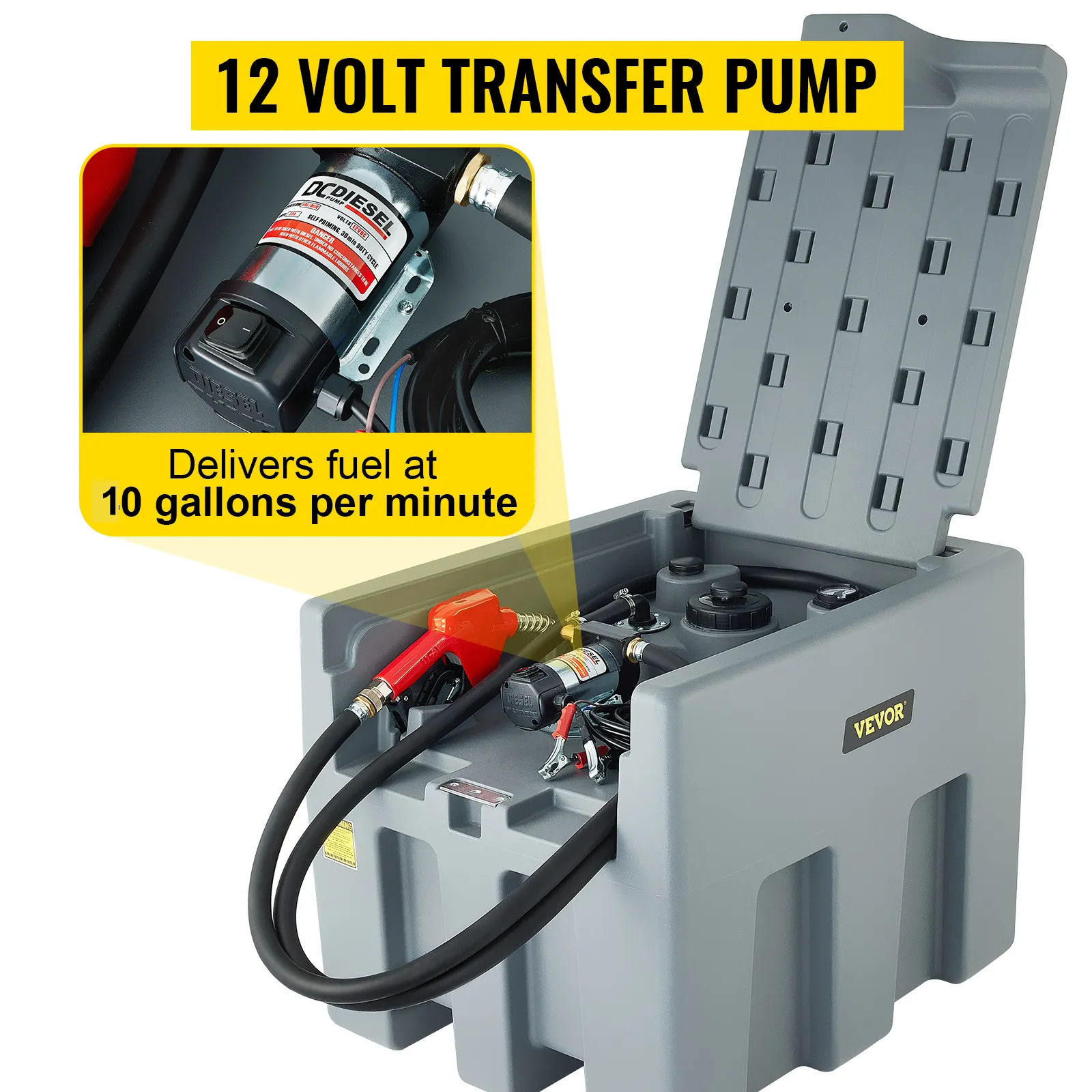 El tanque de combustible diésel VERVOR está diseñado para ser resistente y capaz de soportar el abuso diario. A diferencia de otras opciones, este tanque de combustible portátil está forjado con polietileno, un material que ha demostrado ser casi indestructible. ¿Y lo que es más? Hay ranuras y bolsillos para montacargas para garantizar que pueda transportar su combustible sin sudar ni preocuparse por un accidente. Además de eso, este tanque de transferencia de diésel de polietileno cuenta con una bomba de transferencia eléctrica de 12 V capaz de entregar diésel más rápido que otros modelos a 40 galones por minuto. De esta forma, le permitirá rellenar más rápido y evitar la contaminación en el proceso.