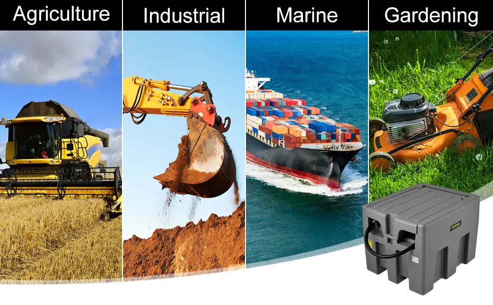 Transporte con facilidad: Las dos ranuras hacen que este tanque de diésel sea fácil y seguro de transportar. Y el diseño integrado del bolsillo para montacargas garantiza un levantamiento estable sobre un vehículo. Gracias a estos maravillosos diseños, nuestro tanque de diésel es ampliamente utilizado en camiones, tractores, barcos, casas rodantes, industrias al aire libre, industrias de la construcción, etc. ¡Pon en marcha tu motor y prepárate para trabajar!