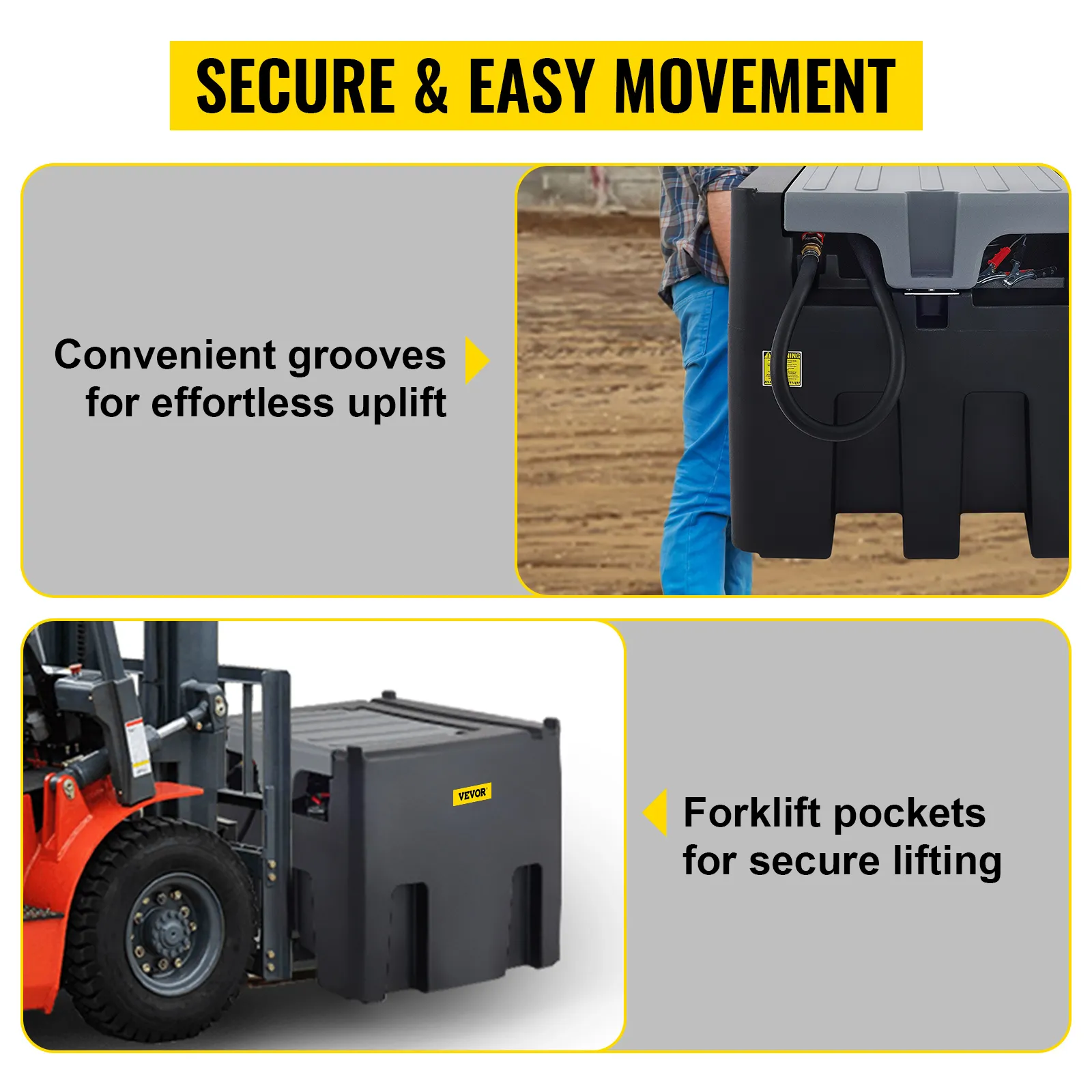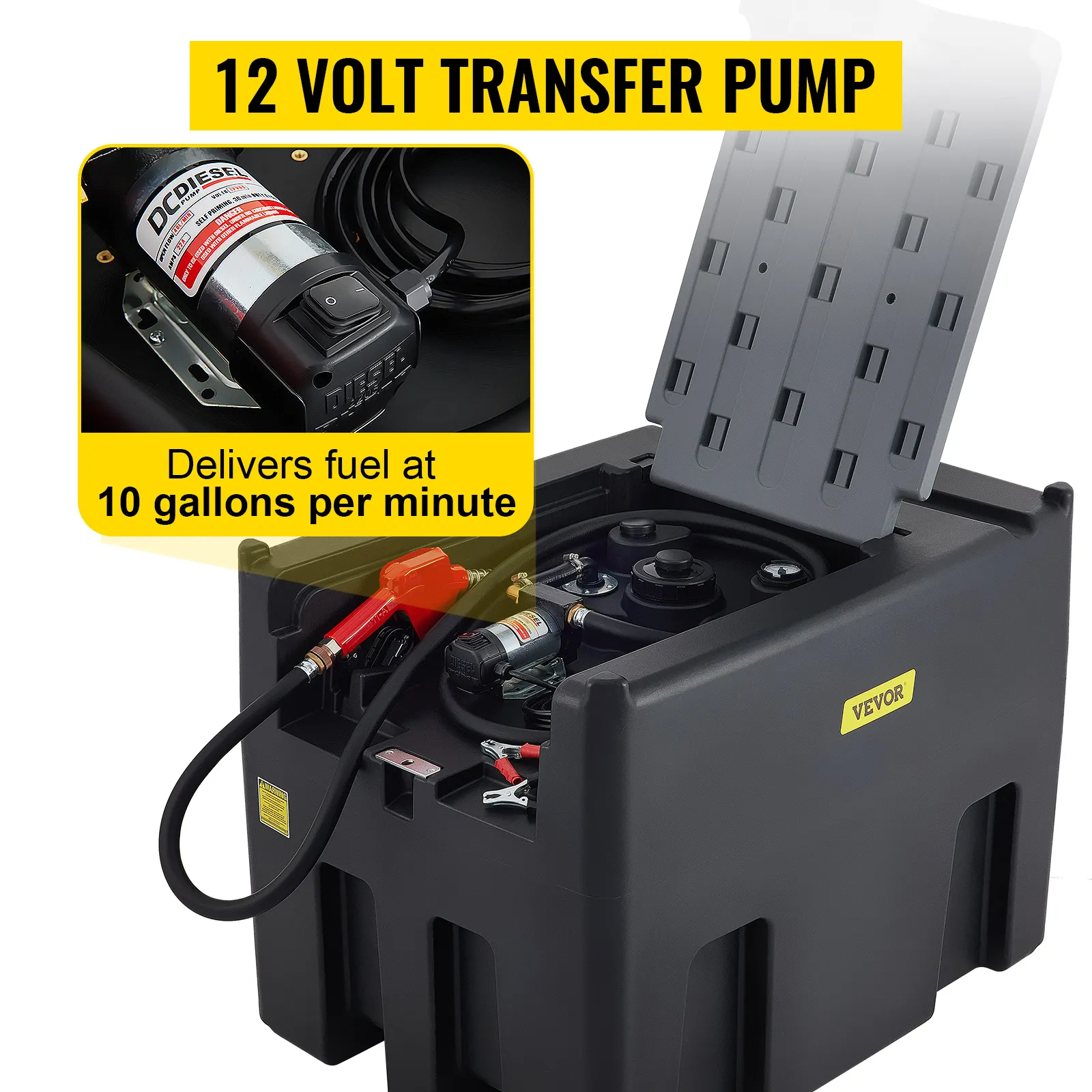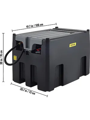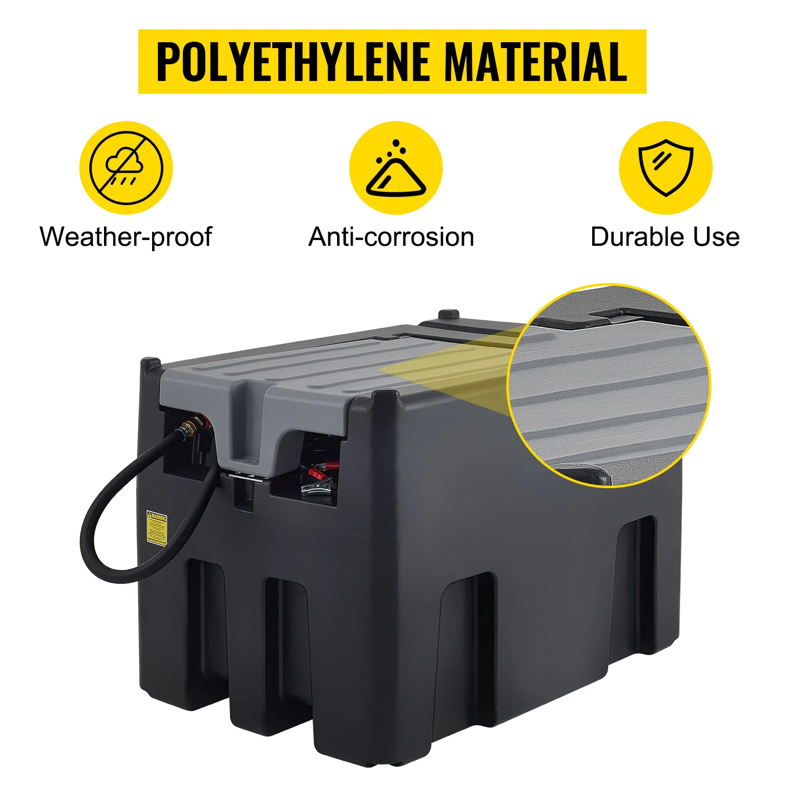 - Construido con material de polietileno, este tanque de diésel portátil es duradero y garantiza una larga vida útil. Diseñado con huecos para montacargas y ranuras, puede mover el tanque de manera rápida y segura. Además, la bomba de transferencia de 12 V entregará combustible a 10 galones por minuto, brindando la mejor manera de recargar fácilmente mientras protege sus activos del combustible contaminado. En resumen, es un excelente tanque de combustible que puede brindarle mucha comodidad.