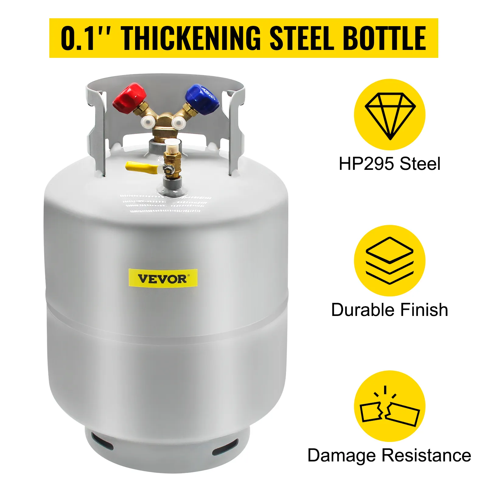 Reutilizable y confiable: ¿Tiene problemas para recuperar refrigerantes? Con la ayuda del tanque de recuperación de 50 libras de VEVOR, los refrigerantes se almacenarán de forma segura en un tanque cilíndrico lejos de la contaminación, lo que garantiza su reutilización en cualquier momento. Nuestro tanque de recuperación incluye una válvula de purga de latón con ventajas significativas para soportar altas presiones y explosiones. Son X Probado por rayos e hidrostática y certificado por el Departamento de Transporte (DOT) y Transport Canada (TC) y cumple con las especificaciones DOT-4BA-400 y las pautas ARI