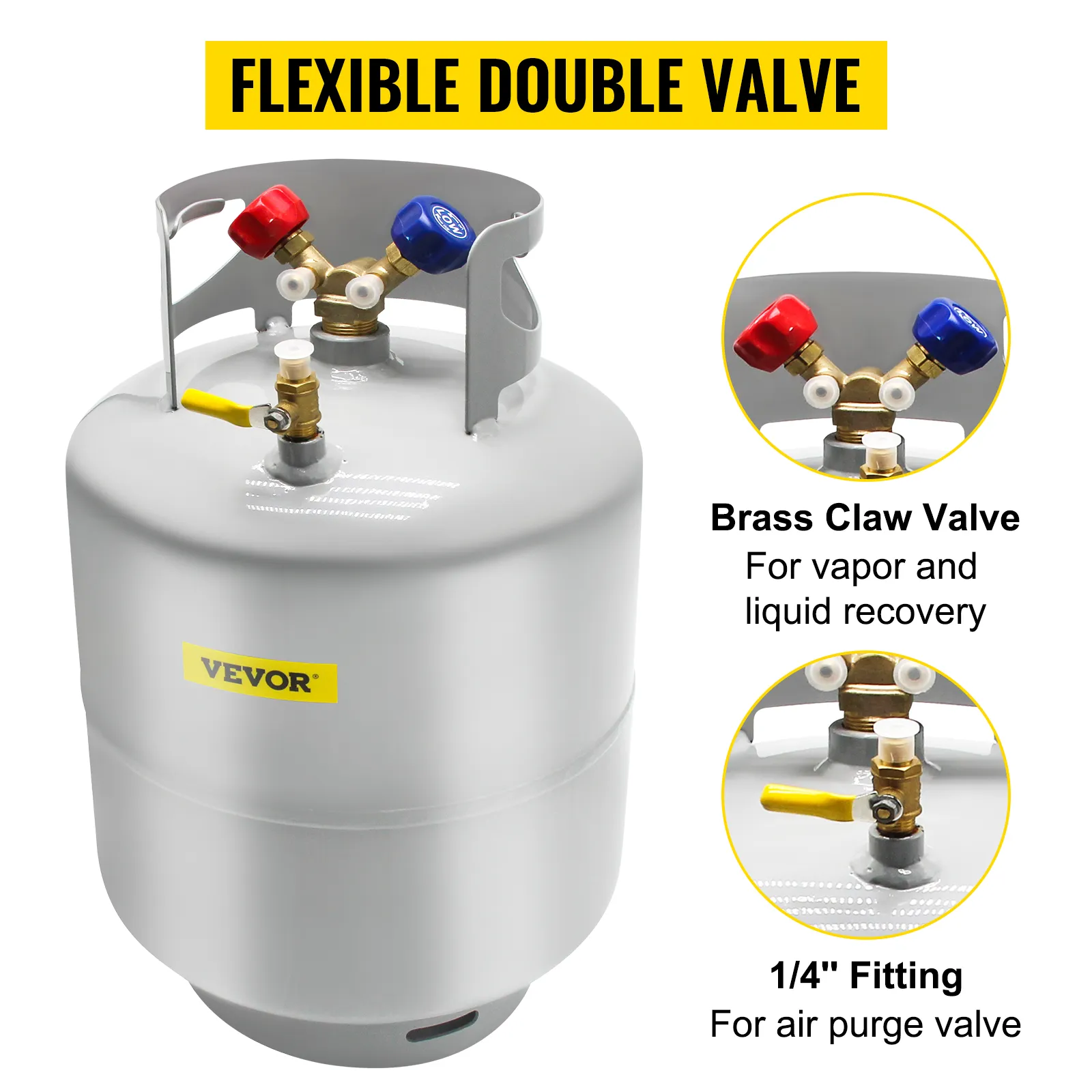 Tanque de recuperación de refrigerante VEVOR, capacidad de 50 LBS, tanque de cilindro portátil de 400 psi con válvula en Y para líquido/vapor, lata de recuperación de alto sellado para R22/R134A/R410A, gris