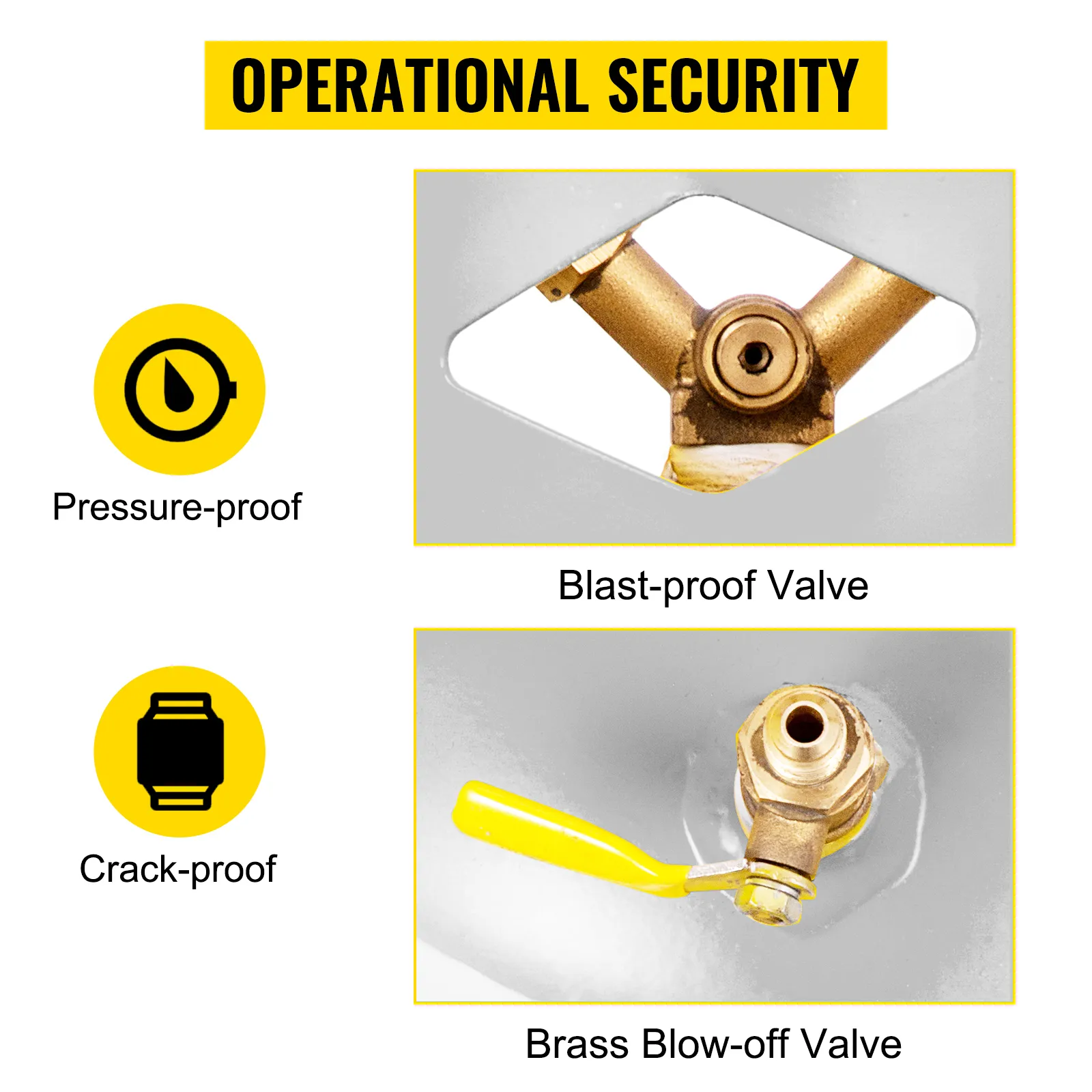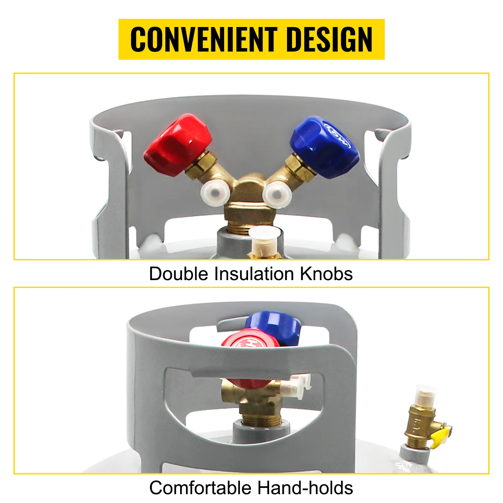 Válvula en Y de latón: El tanque de recuperación de refrigerante de 50 libras con válvulas de doble garra funciona bien en la recuperación de líquidos y vapores, lo que le brinda una gran flexibilidad. La conexión de latón de 1/4" es conveniente para el eslabón. Y las manijas estilo collar reducen las complicaciones y brindan eficiencia durante la operación.