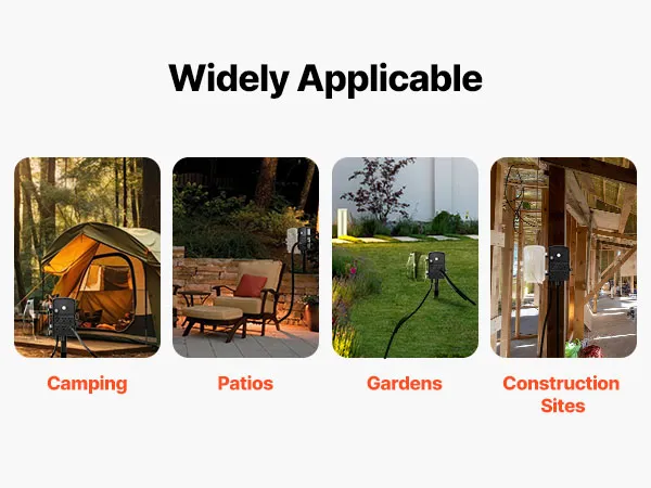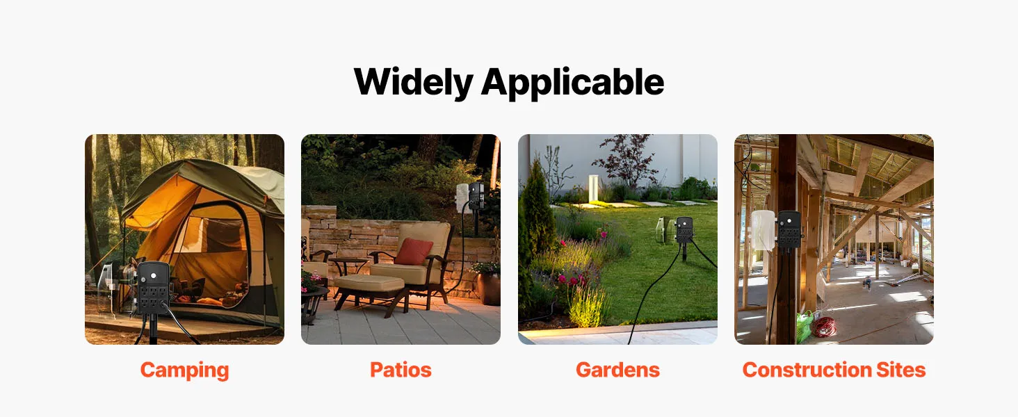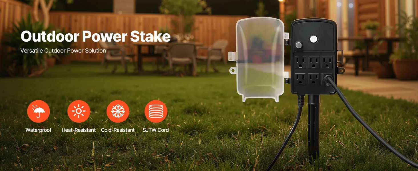 Esta regleta de enchufes para exteriores con cubierta es ideal para alimentar patios, jardines, decoraciones navideñas, campamentos e incluso obras de construcción. Una solución de energía confiable para exteriores que requiere electricidad programada.