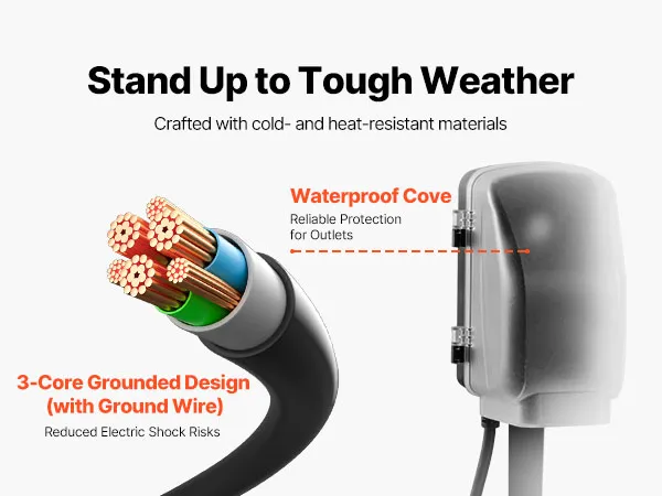 Funcionamiento seguro: Fabricada con cable SJTW de alta resistencia y cable de tierra 14AWG/3C para resistir aceite, agua y condiciones climáticas adversas. Con protección contra sobrecargas de 15 A, esta regleta para exteriores resistente a la intemperie se apaga automáticamente cuando la carga excede el límite.