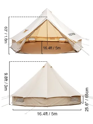 La carpa campana tiene un gran espacio interior, lo que permite dormir de 8 a 10 personas. Diámetro: 5 m / 196,9", altura: 3 m / 118,1", peso: 37 kg / 81,5 libras.