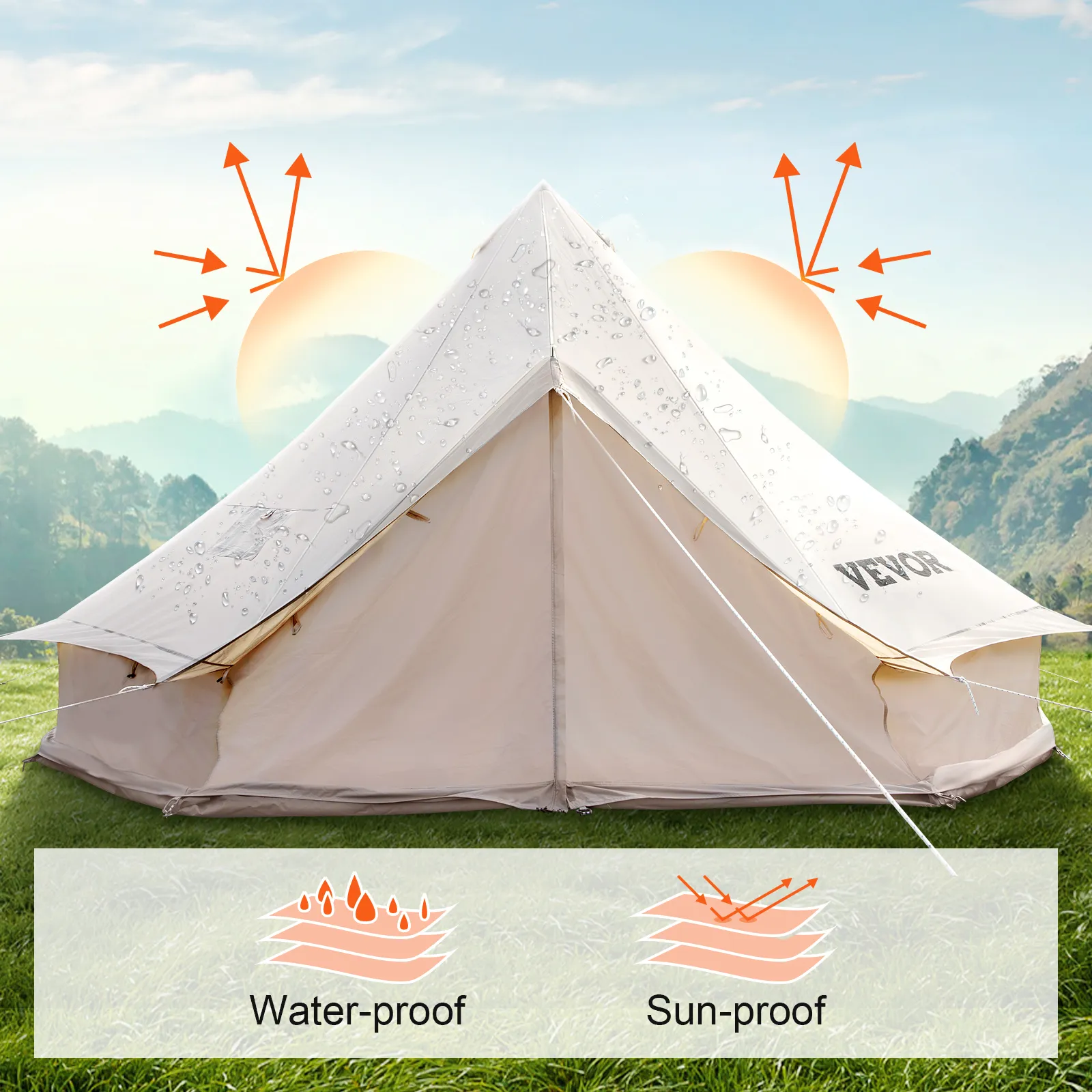 Esta tienda de campaña impermeable para 4 estaciones está hecha de lona de algodón de 300 g/m², que es resistente y liviana. Además, es lo suficientemente grande para que duerman de 8 a 10 personas y lo suficientemente firme contra el clima tormentoso. Un gato para estufa está diseñado para el invierno y se incluyen accesorios completos para una fácil instalación. Por lo tanto, nuestra carpa es perfecta para acampar, hacer caminatas, mochileros, trekking, montañismo, etc.