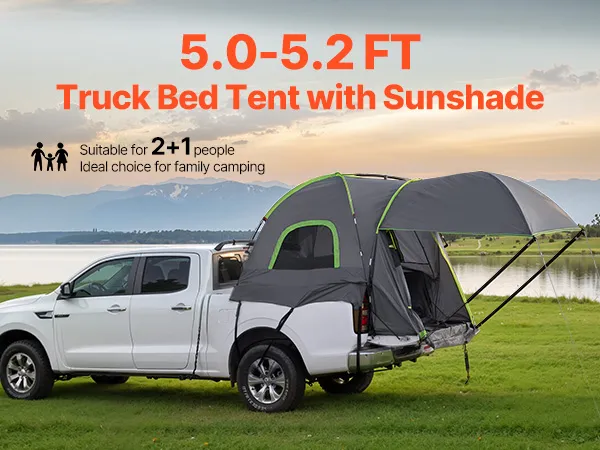 Tienda de campaña VEVOR para camioneta, apta para tiendas de campaña de 1,5 a 1,6 m, impermeable, de poliuretano de 2000 mm, para 2 o 3 personas, resistente, con toldo extensible, toldo impermeable y bolsa de almacenamiento.