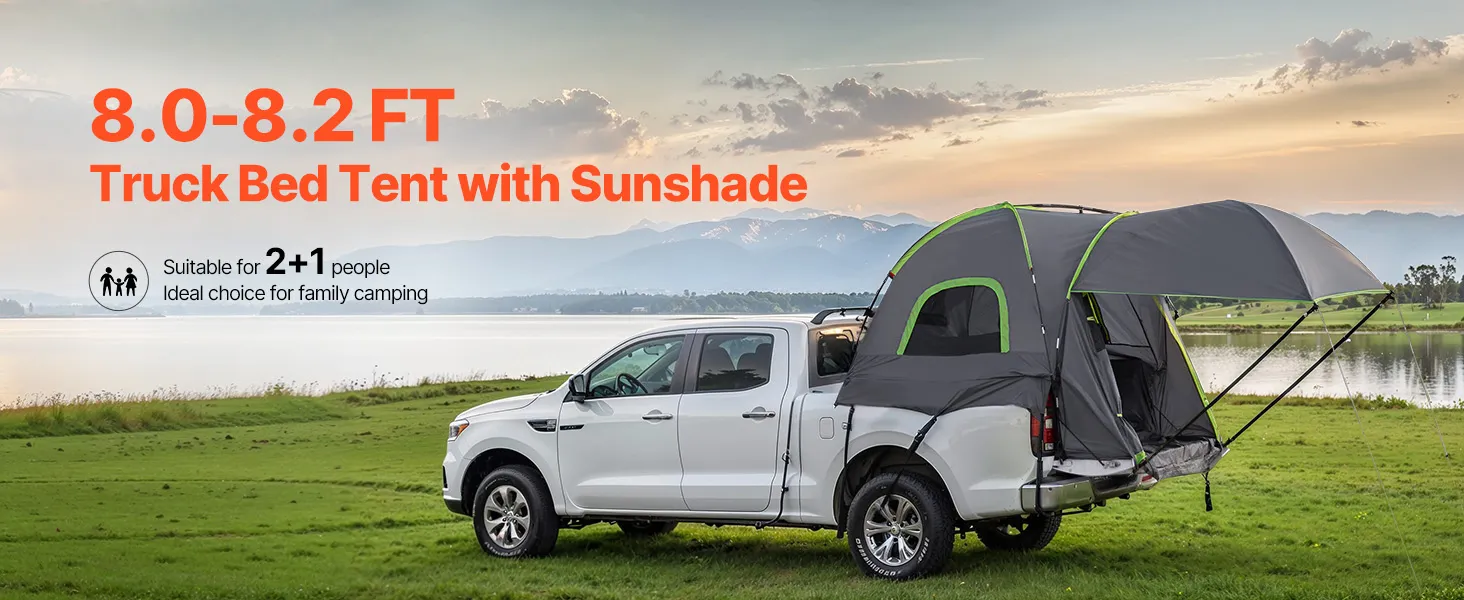 Tienda de campaña VEVOR para camioneta, apta para tiendas de campaña de 2,4 a 2,5 m para acampar, impermeable PU2000 para 2 o 3 personas, carcasa resistente con toldo extensible, toldo impermeable y bolsa de almacenamiento.