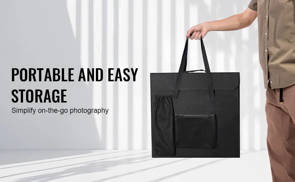 Comodidad portátil y plegable: descubre la comodidad de nuestra caja de luz para fotografía con su diseño plegable y su rápido montaje con velcro. Fácil de instalar y almacenar sin necesidad de soportes, tornillos o configuraciones de iluminación complejas. Nuestra caja de luz, que viene completa con una bolsa de transporte de tela no tejida para facilitar su transporte, es perfecta para capturar fotografías de calidad profesional en cualquier lugar y en cualquier momento.