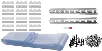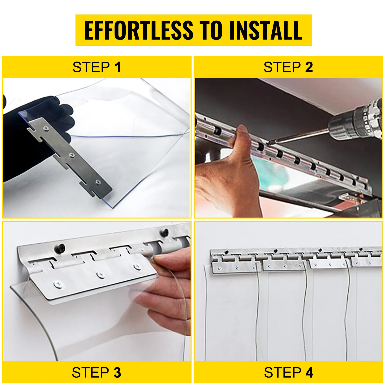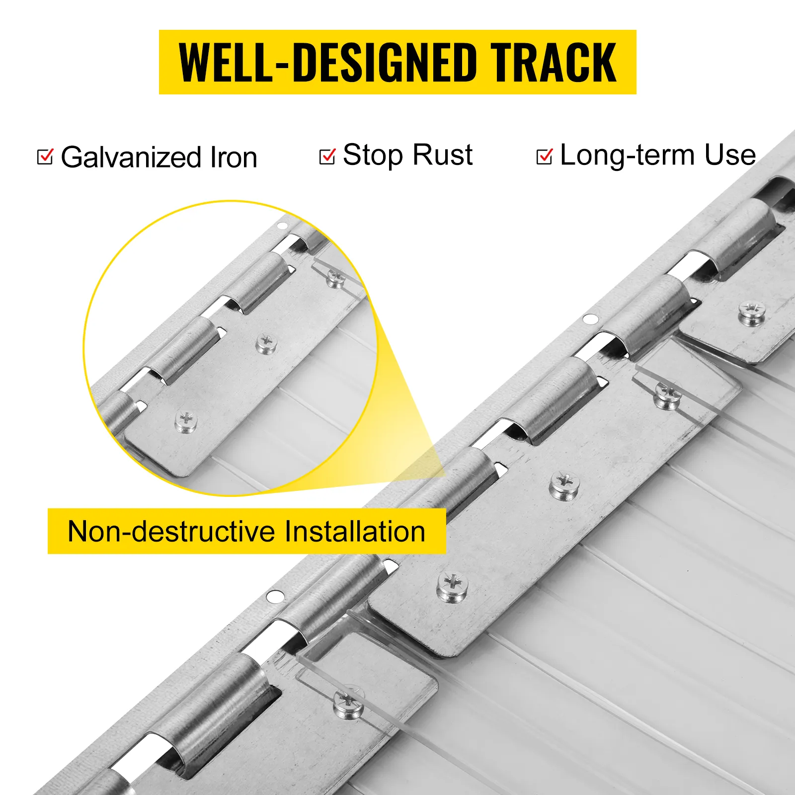 Nuestra cortina de tiras de PVC cuenta con un riel de montaje frontal de alta calidad hecho de hierro galvanizado contra la oxidación. Tenga en cuenta que el riel de montaje de la cortina debe ser más largo que la apertura de la puerta.