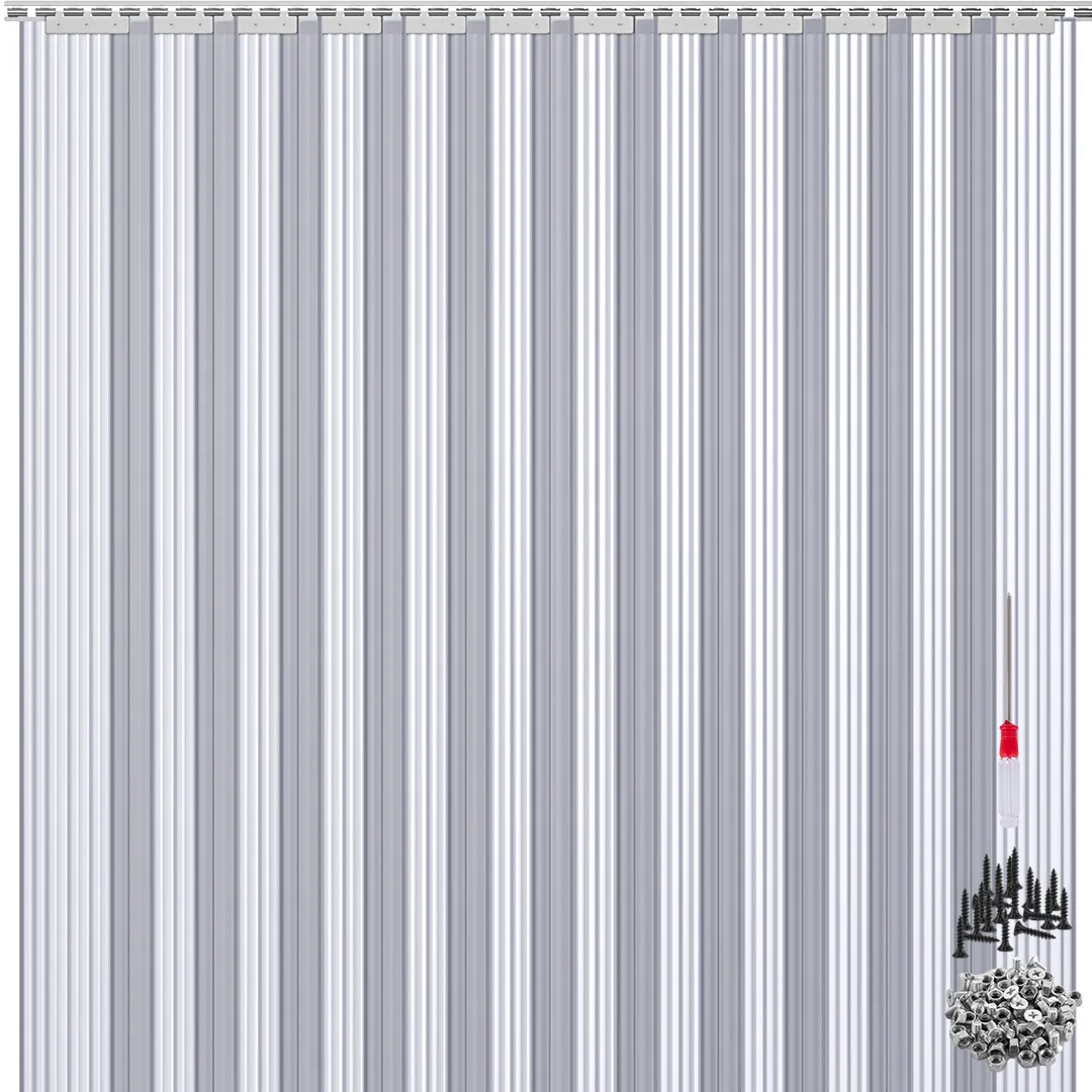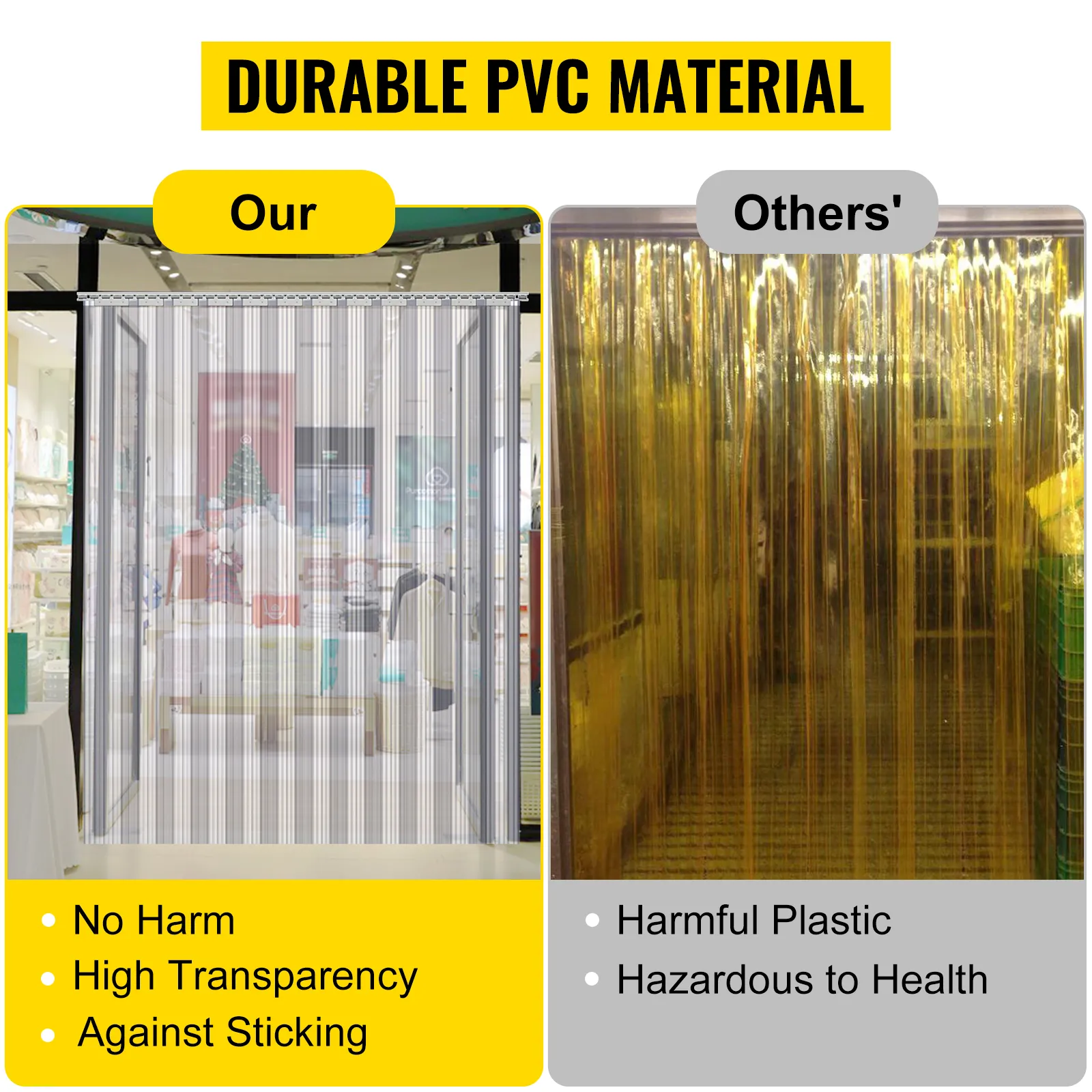 Nuestra cortina de plástico está hecha de material de PVC con alta transparencia y flexibilidad superior, no se tuerce ni se agrieta fácilmente. Además, nuestra cortina de tiras de plástico con diseño de nervaduras funciona bien contra la adherencia.
