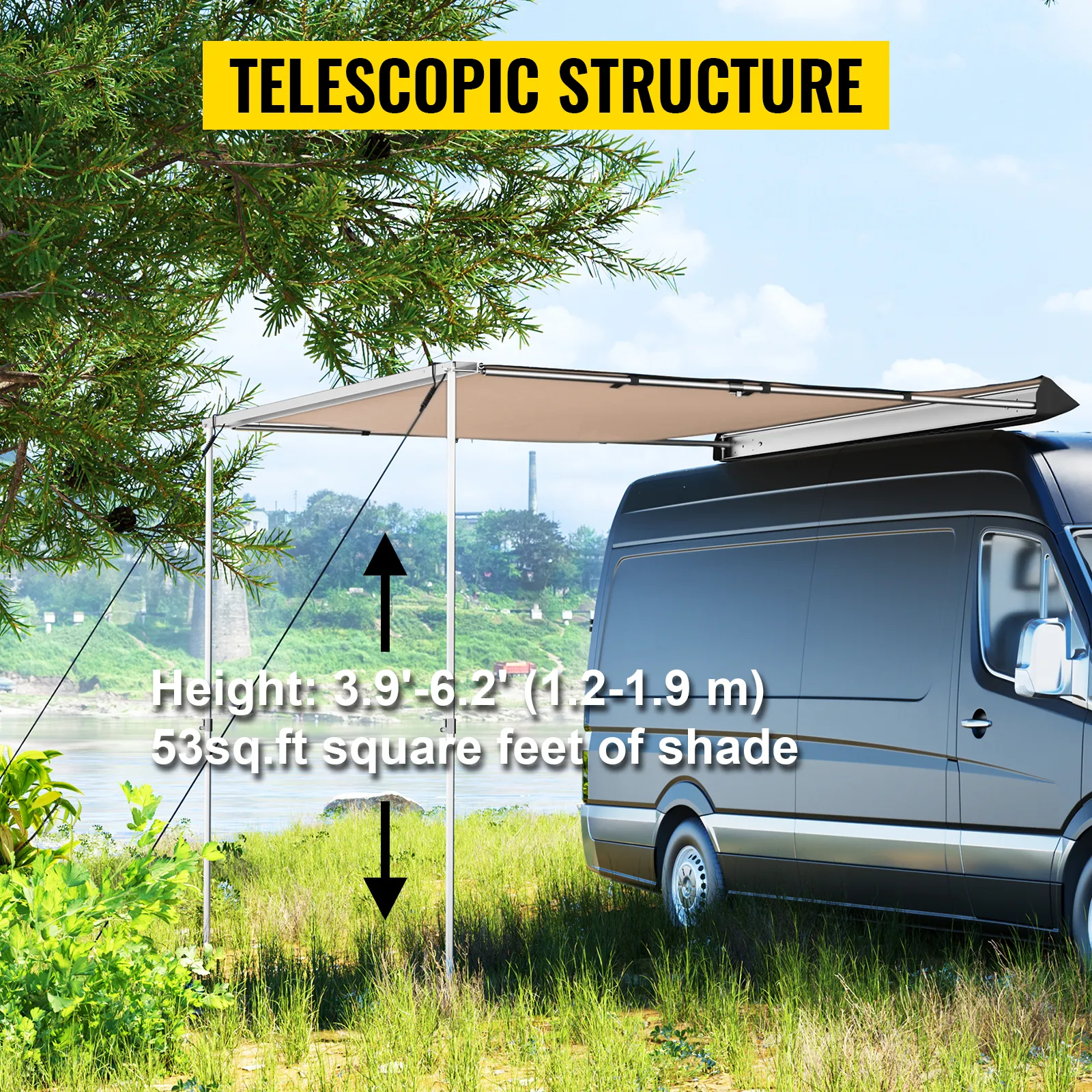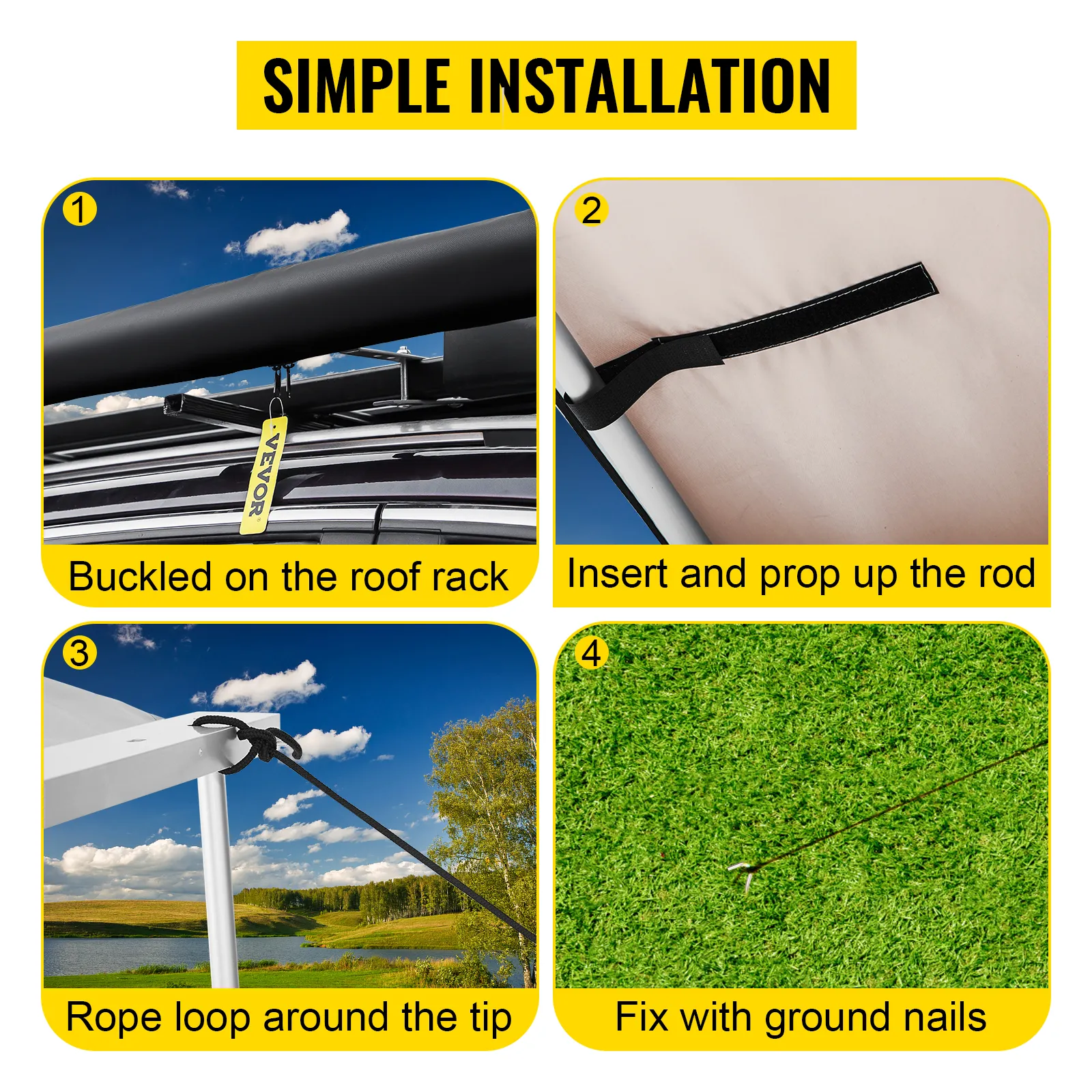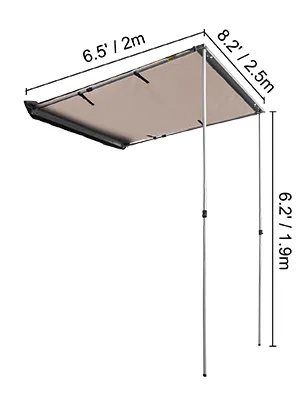 El toldo para automóvil VEVOR está diseñado para brindar sombra para protegerse del sol, la lluvia y las hojas durante campamentos, viajes en automóvil o eventos deportivos. Puede desplegarse y retraerse en pocos minutos y montarse fácilmente en los techos de los vehículos. ¡Obtenga protección instantánea y disfrute de un ambiente exterior cómodo en todas partes!