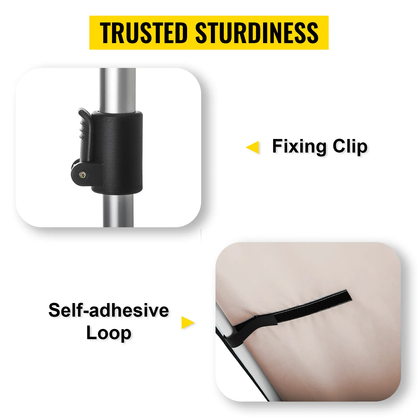 Los sujetadores de velcro facilitan la fijación de la tienda de sombra al marco. Los clips de alta calidad mantienen estable el techo de su toldo.