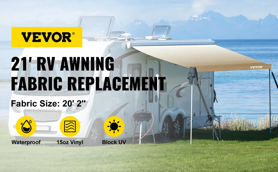 El reemplazo del toldo para vehículos recreativos tiene un tamaño de 20,2 pies x 8 pies/615 x 240 cm y proporciona suficiente sombra. Es muy duradero y complementará cualquier RV.