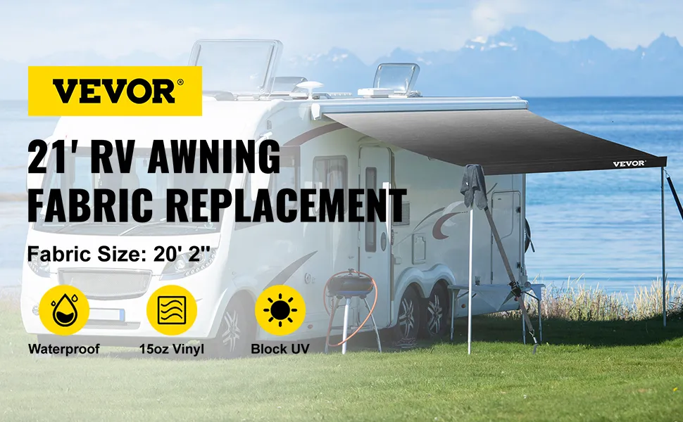 Esta tela de reemplazo de vinilo funcionará con toldos para vehículos recreativos que se operan manualmente sin una cubierta de metal. Fabricada con vinilo de 15 oz, es una excelente opción para bloquear los rayos UV y la lluvia, y ampliar el espacio para actividades al aire libre. Además, puede reemplazar fácilmente la tela del toldo porque ambas varillas de polietileno están cosidas.