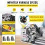 El torno para metal viene con velocidades variables de 50-2250±10%. Cambie fácilmente la velocidad girando el interruptor. Mientras tanto, el indicador más allá le notifica sobre las operaciones en curso.