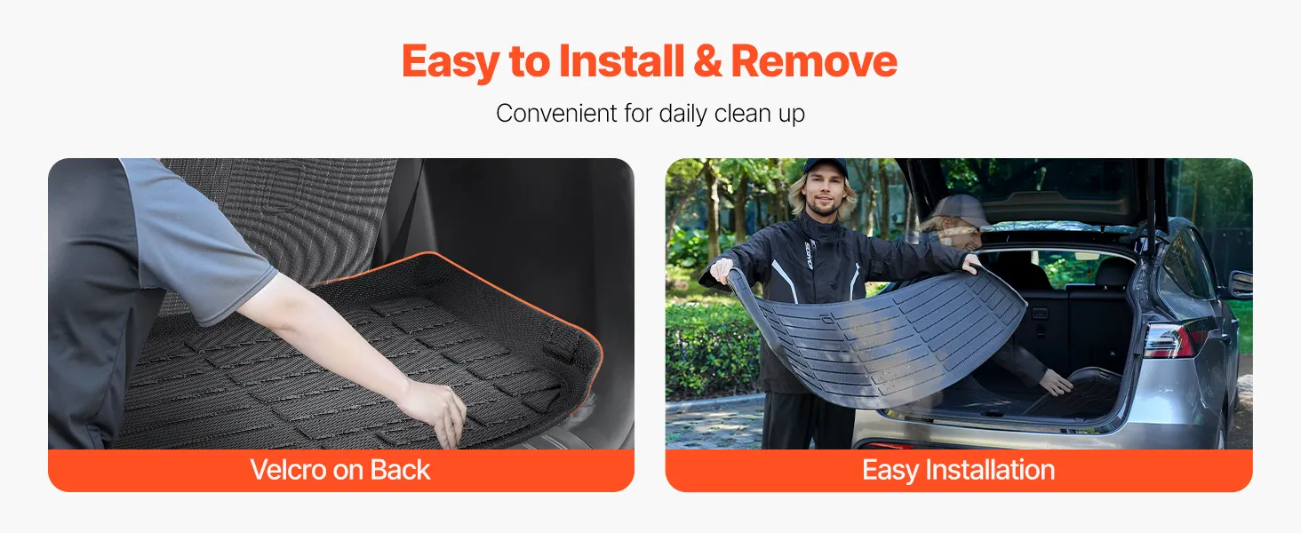 Say goodbye to complicated setups! With simple steps, you can easily install or remove the trunk mat and backrest mat, saving you time and effort while keeping your car interior neat.