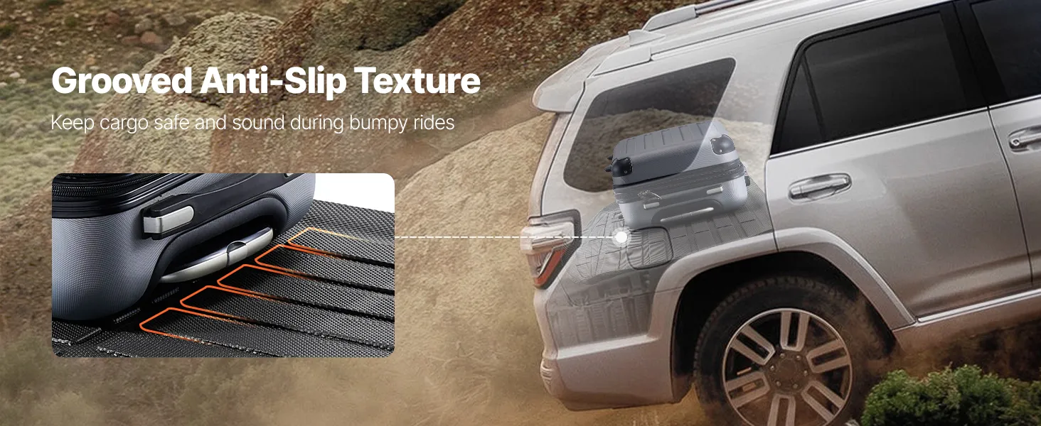 Anti-Slip Surface: The innovative 3D grooves significantly increase friction, help your cargo stay secured from sliding during transport and giving you the confidence that your items are safe throughout the journey.