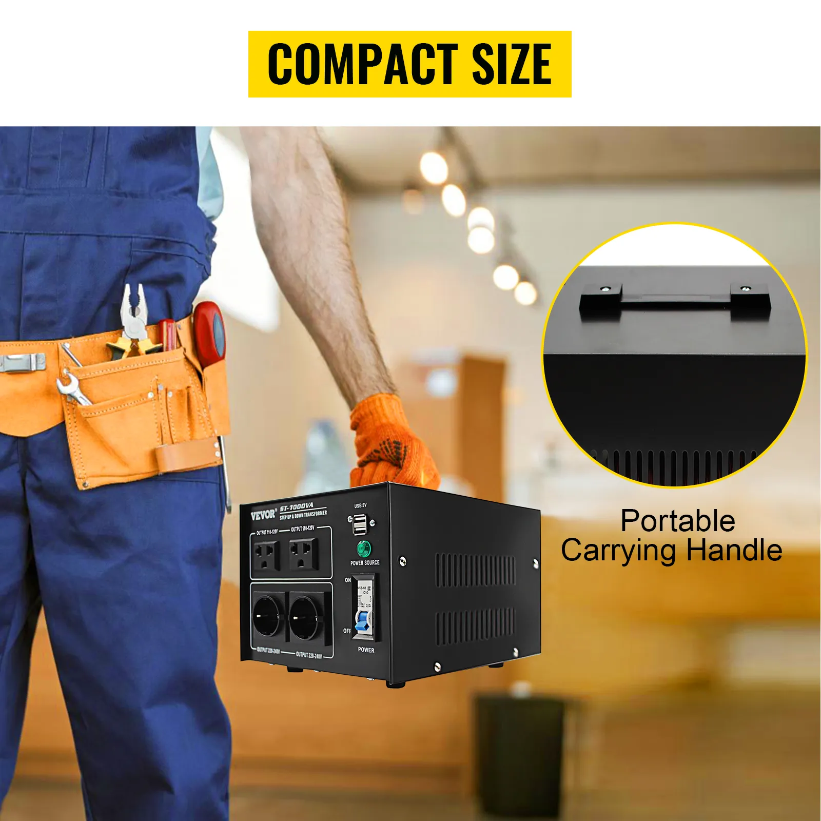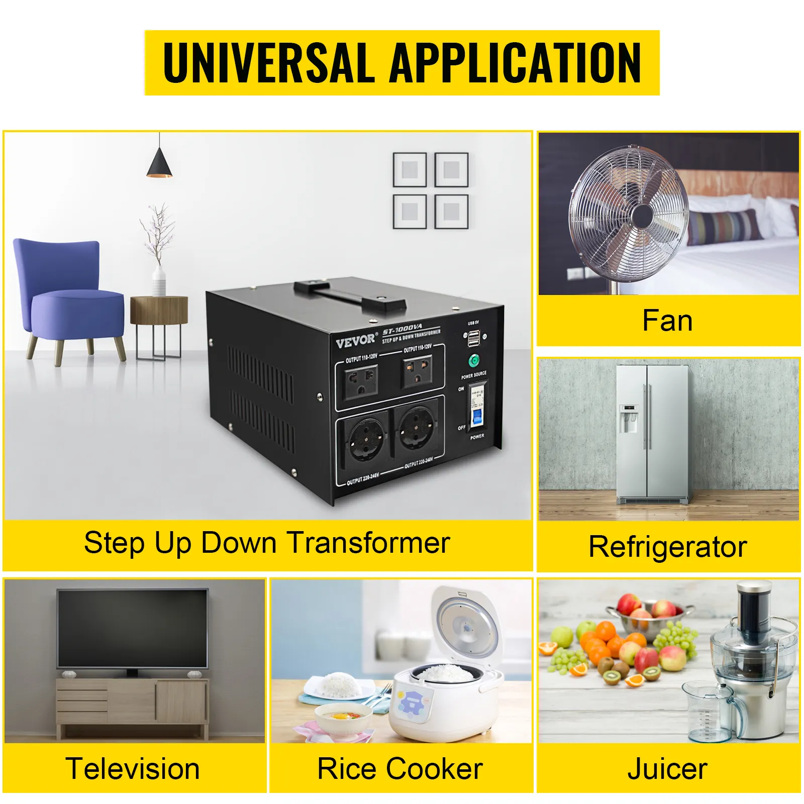 Este transformador elevador y reductor puede convertir 110 V a 220 V y viceversa, conectándose fácilmente a múltiples aparatos eléctricos al mismo tiempo. Equipado con 4 salidas de CA, tecnología de núcleo toroidal y múltiples protecciones, nuestro transformador de voltaje garantiza una salida estable y una alta eficiencia de conversión. Cargue y conéctese con el transformador VEVORs.