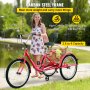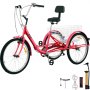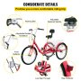 Triciclo VEVOR rojo para adultos con cesta trasera grande y herramientas de montaje incluidas.