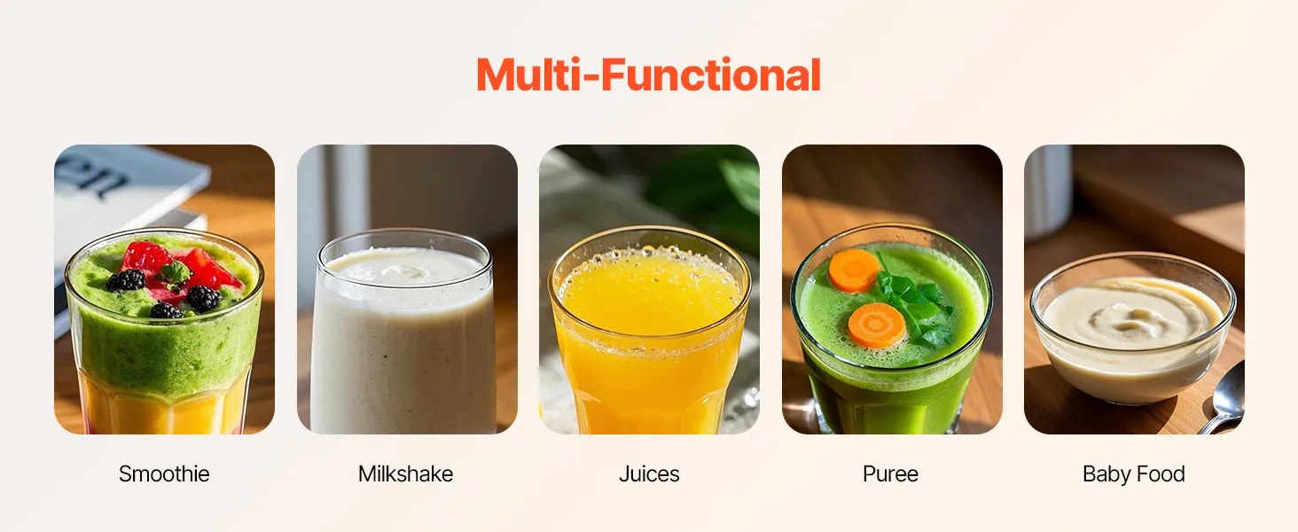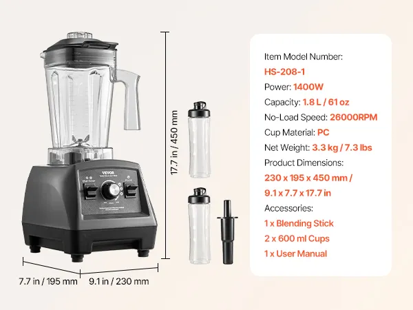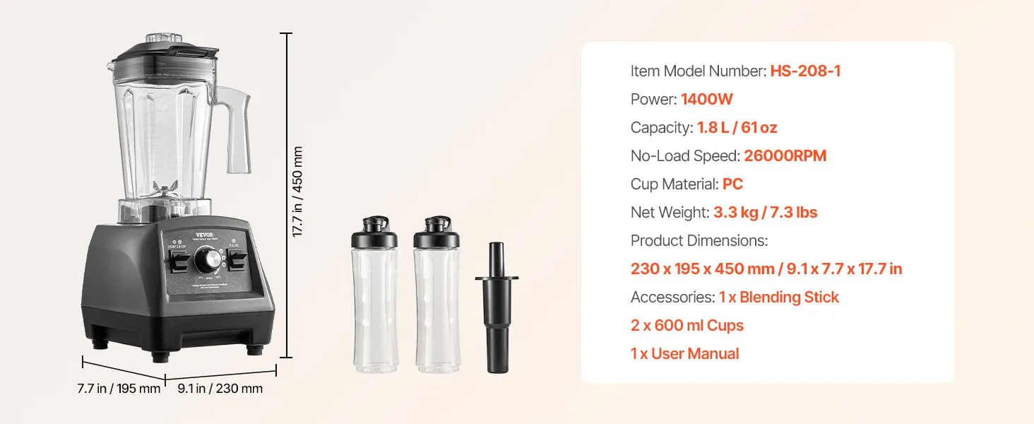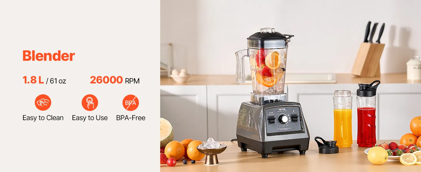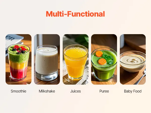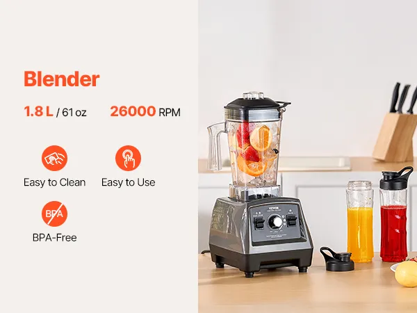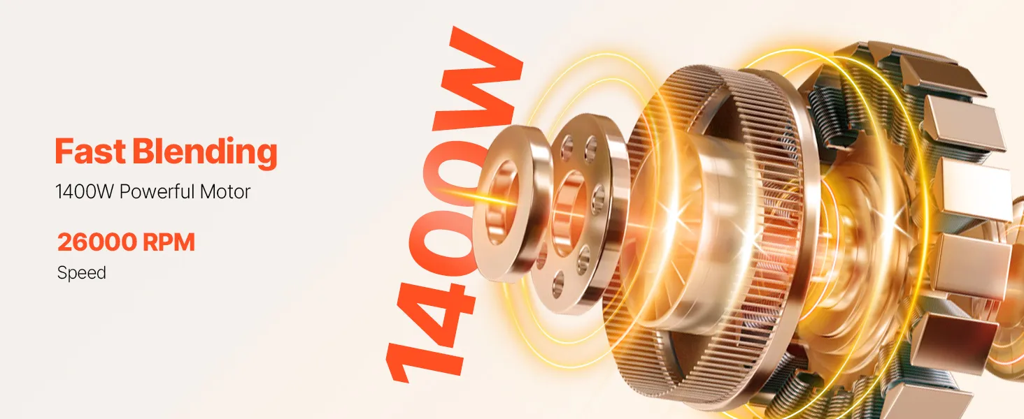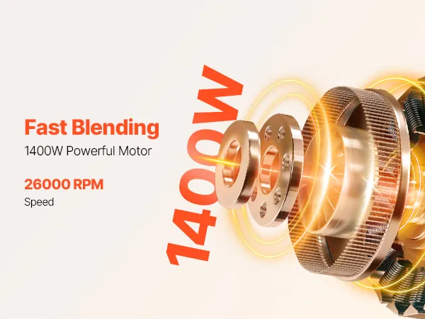 Licuado rápido: esta licuadora de alta velocidad cuenta con un motor de 1400 W con una velocidad de 26 000 RPM, lo que brinda un rendimiento de licuado potente. Equipada con cuchillas afiladas mejoradas, tritura sin esfuerzo hielo, verduras y frutas. Con un simple giro, puede crear batidos y malteadas en segundos.