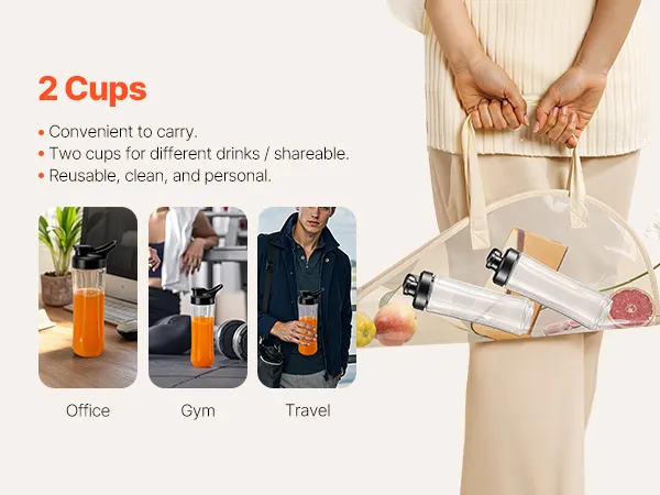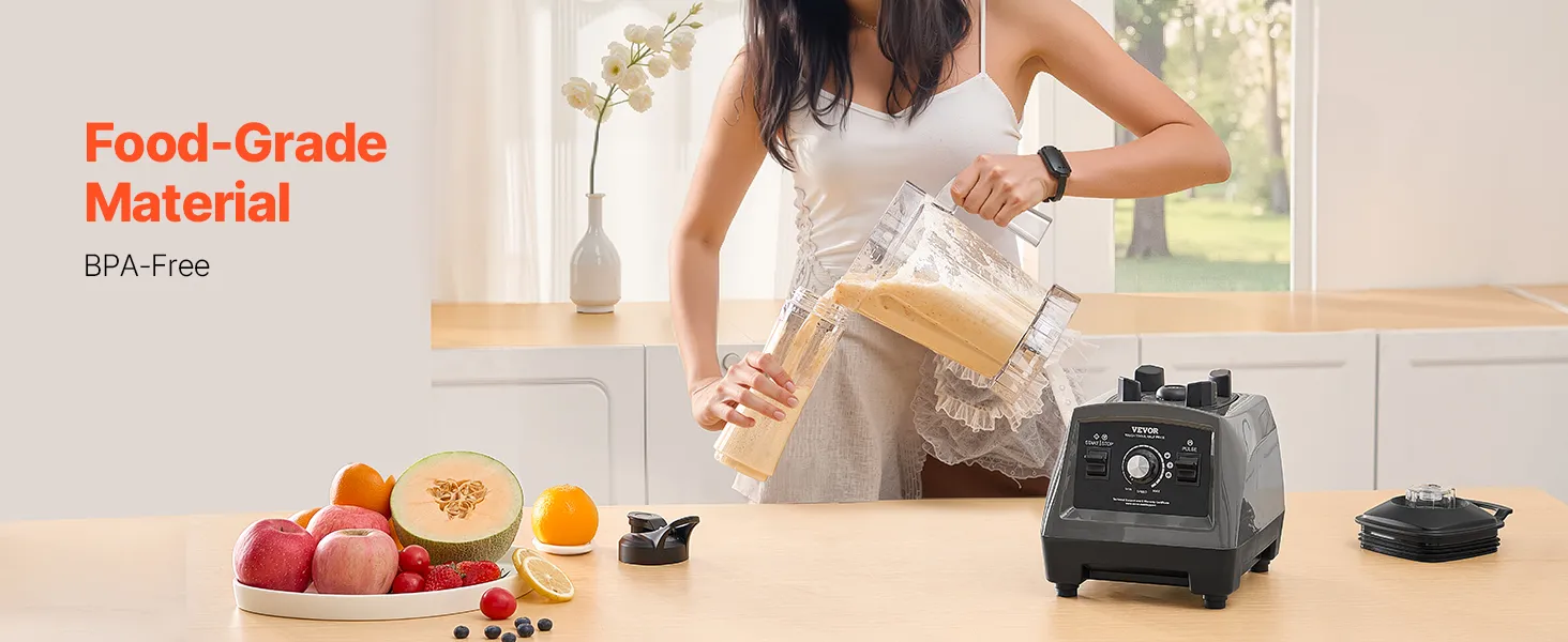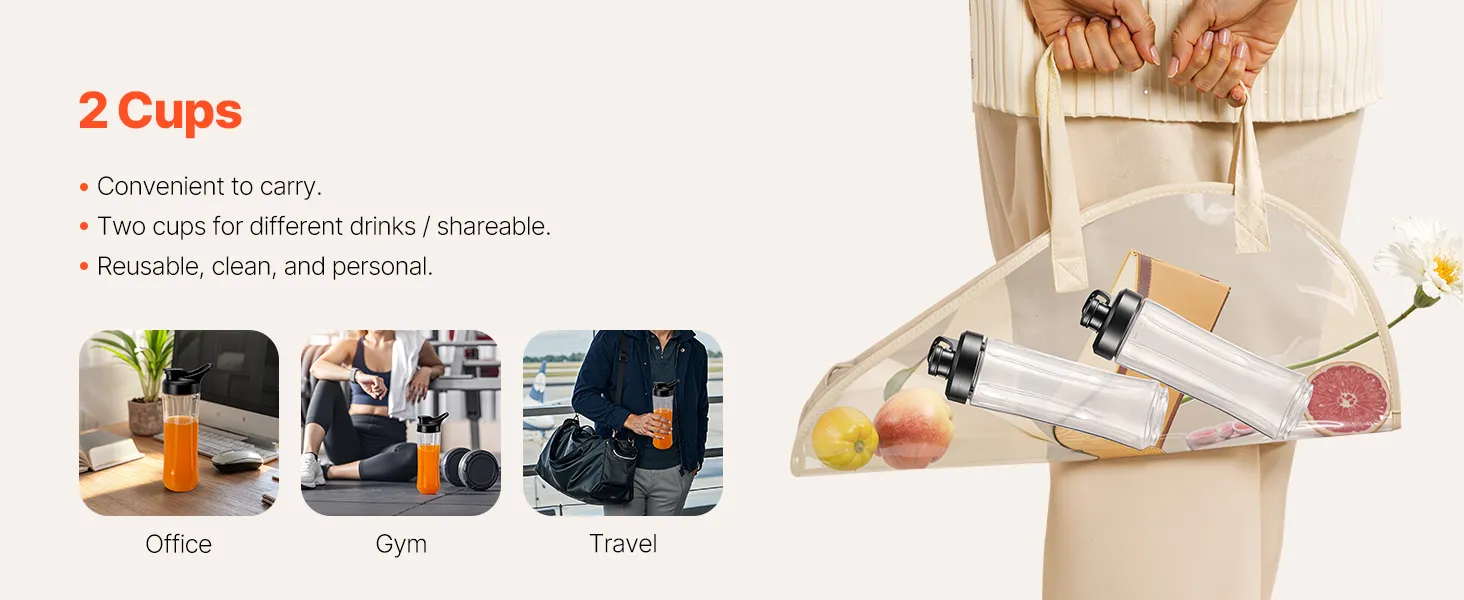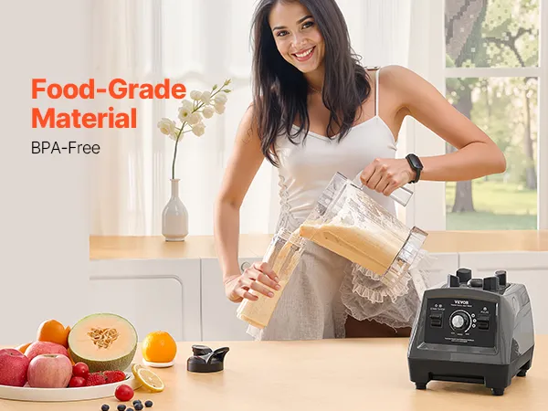 Gran capacidad de 1,8 l/61 oz: la jarra de licuadora de 1,8 l/61 oz sin BPA te permite preparar hasta cuatro tazas de 13 oz o siete tazas de 8 oz de bebidas por tanda. Además, incluye dos botellas portátiles de 600 ml, lo que te permite disfrutar fácilmente de tus bebidas mientras viajas. El material apto para alimentos garantiza un uso seguro.