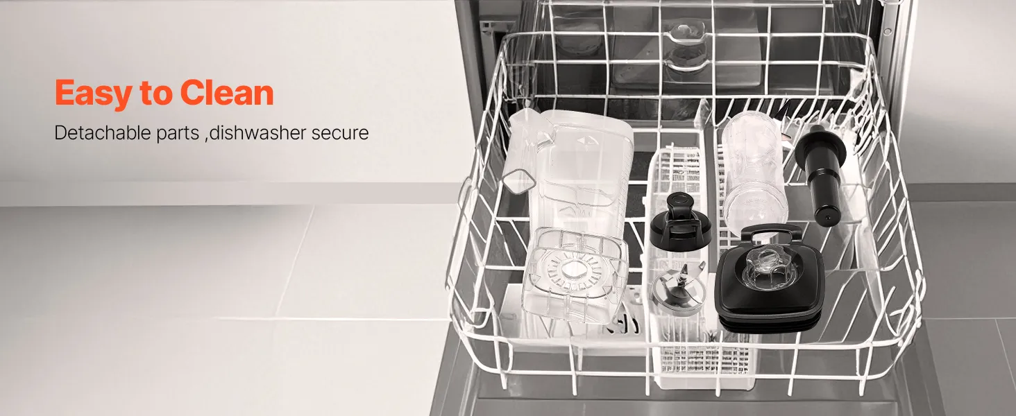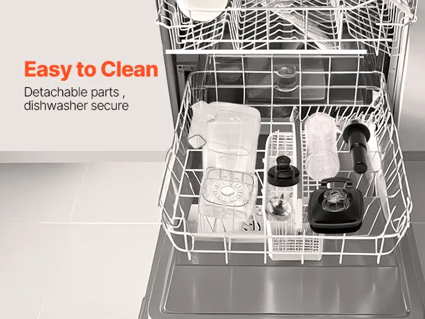 Fácil de limpiar: la limpieza es muy sencilla: basta con añadir unas gotas de detergente y agua tibia y la licuadora se autolimpia en tan solo 30 a 60 segundos. El recipiente desmontable y el prensador también se pueden lavar en el lavavajillas para mayor comodidad.