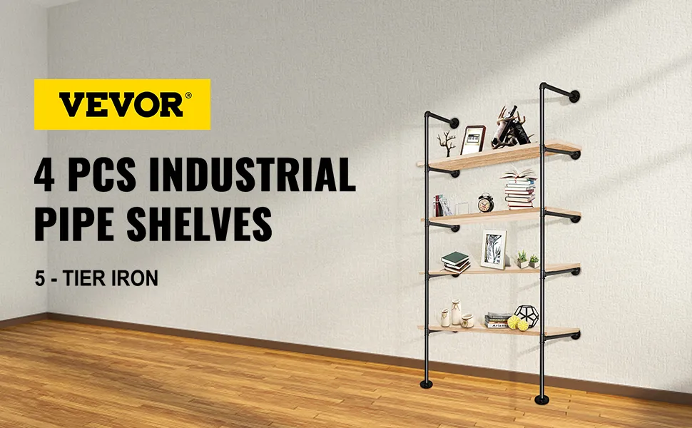 Los estantes flotantes vienen con todos los accesorios para unir tuberías estándar, incluidas abrazaderas de 3/4, codos de 3/4, tes de 3/4, bridas de 3/4 y tornillos en el paquete.