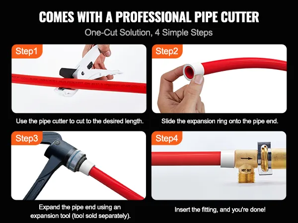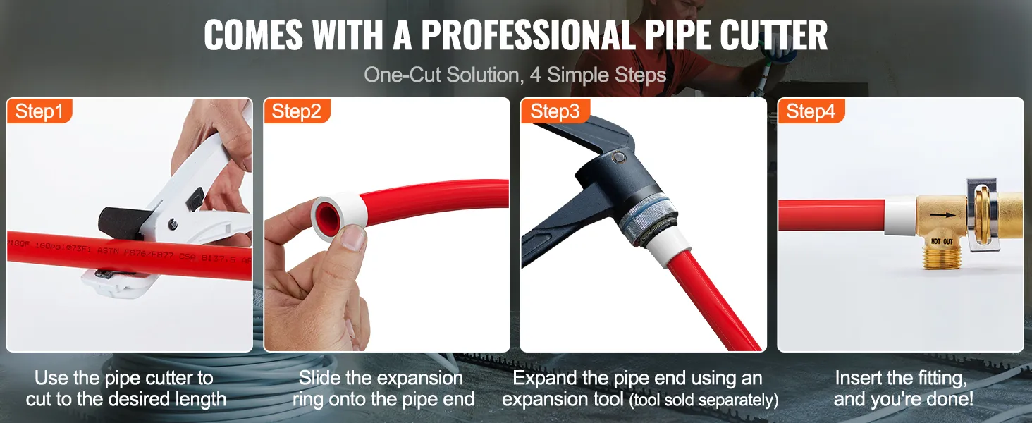 Say goodbye to cumbersome pipe cutting! Our PEX-A pipe comes with a dedicated pipe cutter that provides smooth and clean cuts without snagging. The smooth edges prevent any sharp burrs, ensuring you won't hurt your hands.