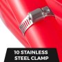 red VEVOR pex tubing with stainless steel clamp, text "10 stainless steel clamp".