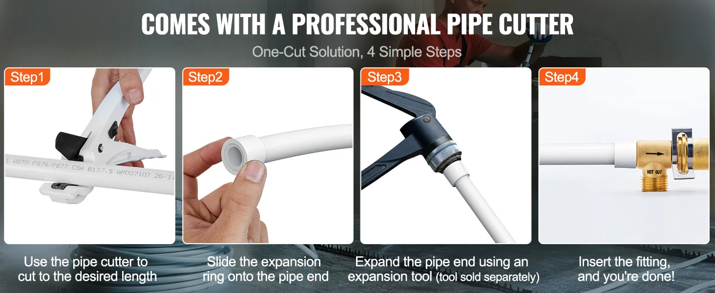 Say goodbye to cumbersome pipe cutting! Our PEX-A pipe comes with a dedicated pipe cutter that provides smooth and clean cuts without snagging. The smooth edges prevent any sharp burrs, ensuring you won't hurt your hands.