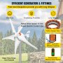 El generador de molino de viento puede arrancar a una velocidad del viento de 2 m/s, sobrevivir a 45 m/s. La hoja cuenta con un sistema de ajuste de guiñada. Puede ajustar automáticamente la dirección para capturar la máxima energía eólica. Además, con un diseño de cojinete de bolas doble, la turbina tendrá una vibración baja cuando la pala esté girando.