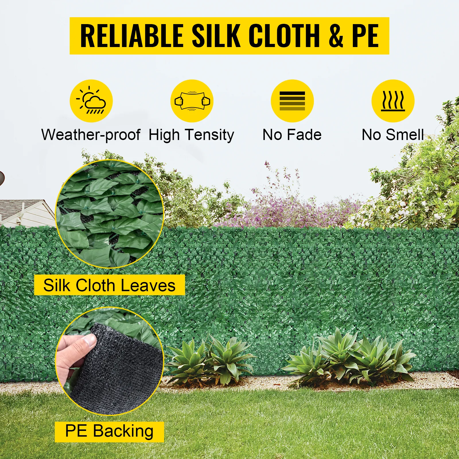 La tela de seda de alta calidad y los materiales de polietileno garantizan un uso duradero y un mantenimiento sin esfuerzo. Por lo tanto, nuestra pantalla de valla de privacidad de hiedra artificial no se desvanece ni se marchita fácilmente, incluso en condiciones exteriores adversas.