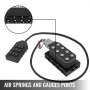 Esta válvula múltiple infla y desinfla hasta cuatro cámaras de aire utilizando dos puertos de entrada NPT de 1/4" y dos puertos de escape NPT de 1/4". Los puertos que conectan la línea de aire con la cámara de aire son de 1/4" NPT, mientras que los puertos que conectan las líneas de aire con los manómetros de aire son de 1/8" NPT. Incluye un arnés plug-n-play resistente a la intemperie que puede mejorar la apariencia y garantiza un funcionamiento adecuado en cada configuración.